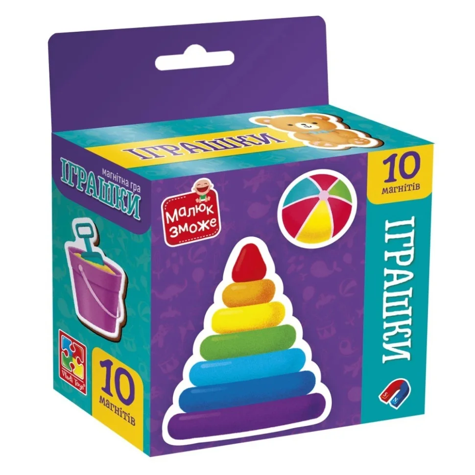 Розпочинайте або продовжуйте ефективне навчання малюків в ігровій формі з набором магнітів “Іграшки”. Гра розвиваюча набір магнітів "Іграшки" включає класичні і улюблені іграшки малюків.