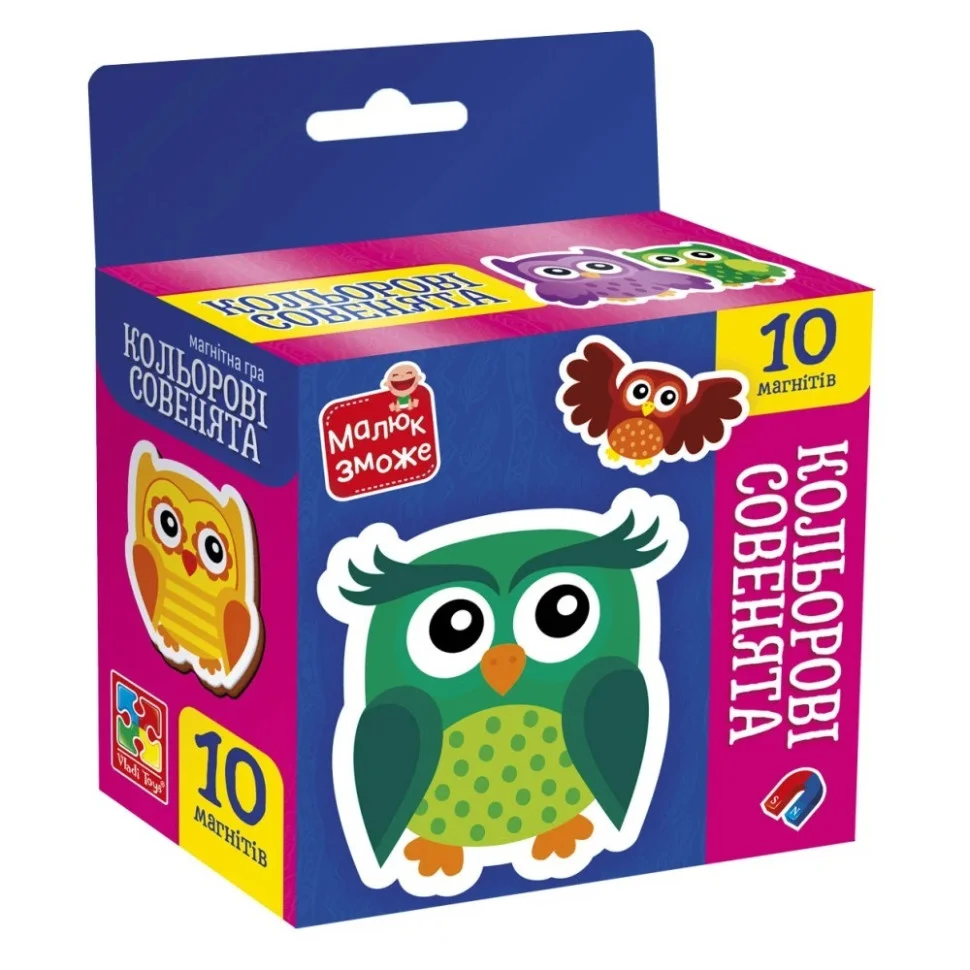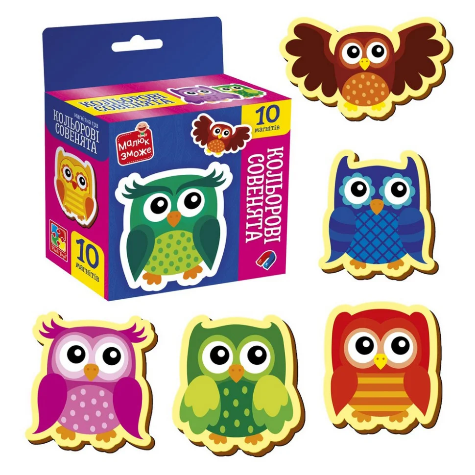 Розпочинайте або продовжуйте ефективне навчання малюків в ігровій формі з набором магнітів “Кольорові совенята”. Гра розвиваюча набір магнітів "Кольорові совенята" допоможе батькам в ознайомленні малюків із кольорами, формами, рахунком.