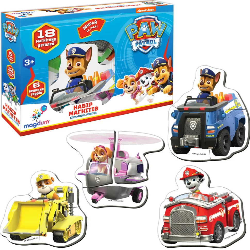 Набір магнітів ML4034-32 для веселої та навчальної гри. Фігурки у стилі популярного мультфільму "Щенячий патруль". Всі деталі оснащені магнітною основою, ламінованою поверхнею та міцним картоном. У комплекті 18 магнітних деталей, 6 персонажів мультфільму. Набір виготовлений із якісних та безпечних матеріалів. Діти від 3-х.
