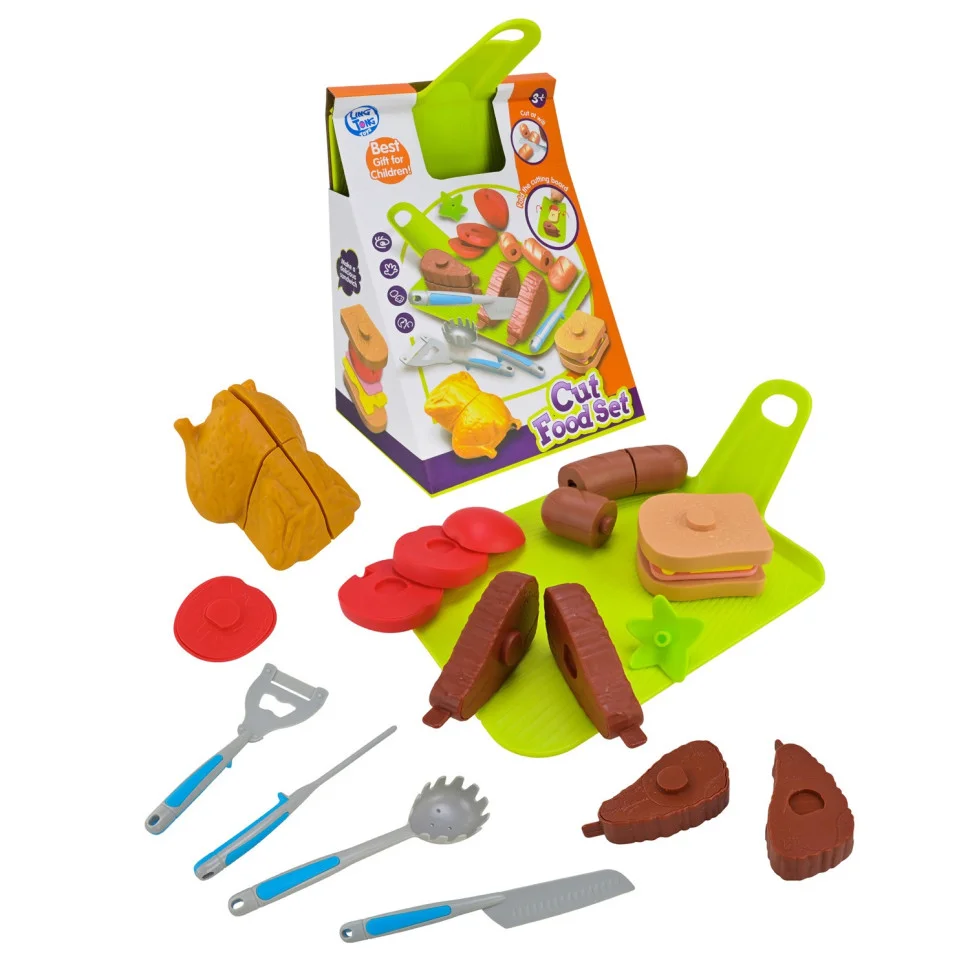 • Завдяки столовому приладдю та зручній дощечці продукти можна безпечно "розрізати", створюючи різні кулінарні історії.