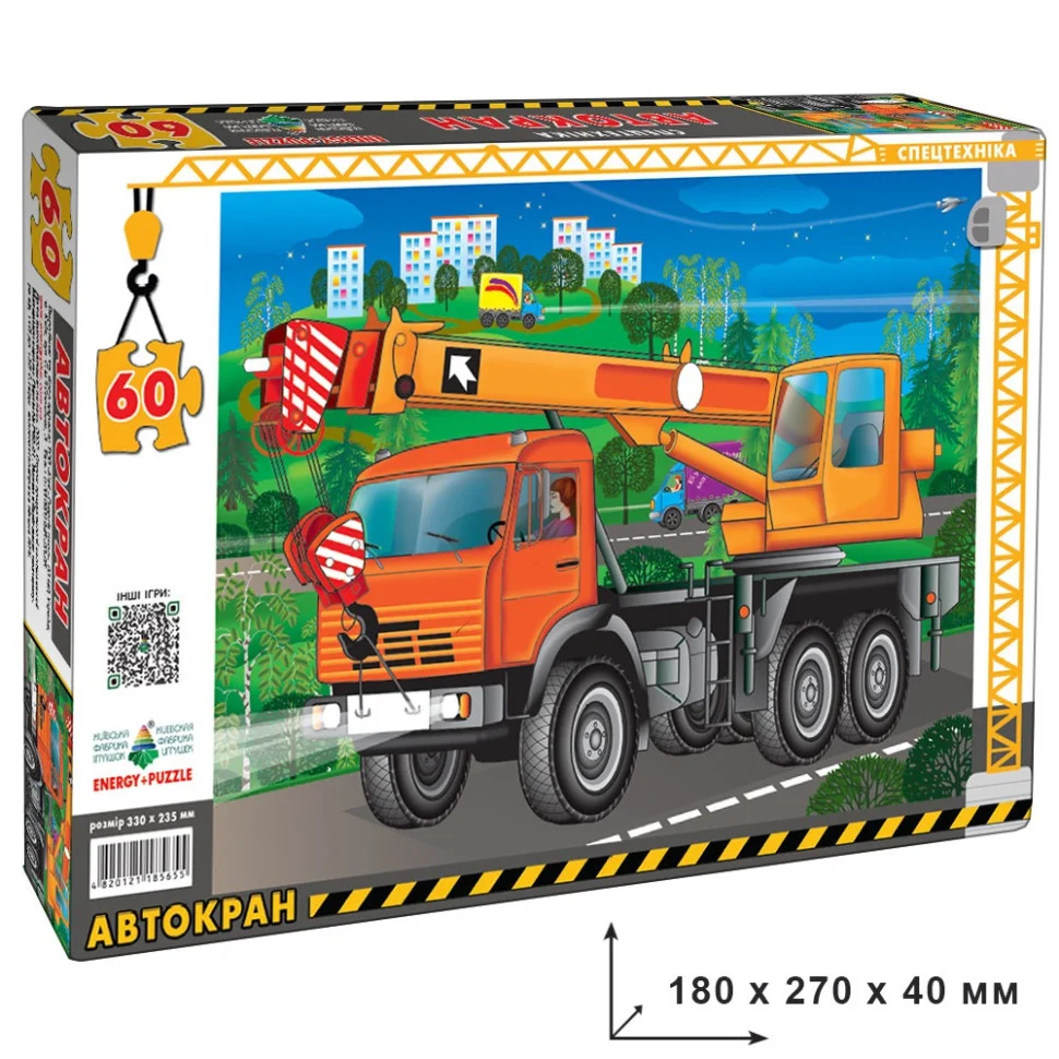 На ігровому полі розміром 235 х 330 мм зображено автомобіль АВТОКРАН. Поле розрізане кривими лініями на 60 частин, з яких потрібно зібрати цілу картинку.
