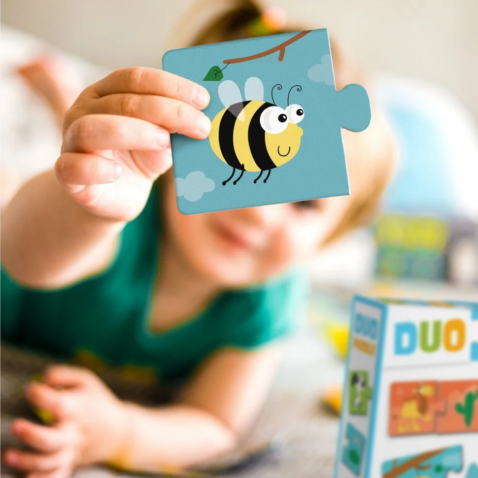 Пазл Dodo DUO “Хто що їсть?” — це захоплива розвивальна гра для найменших, яка знайомить дитину зі світом тварин через прості логічні завдання. У наборі 12 міні-пазлів, кожен із яких складається з двох деталей: на одній зображена тваринка, а на іншій — її улюблена їжа. Завдання малюка — знайти правильну пару та скласти картинку, що перетворює навчання на веселу гру.