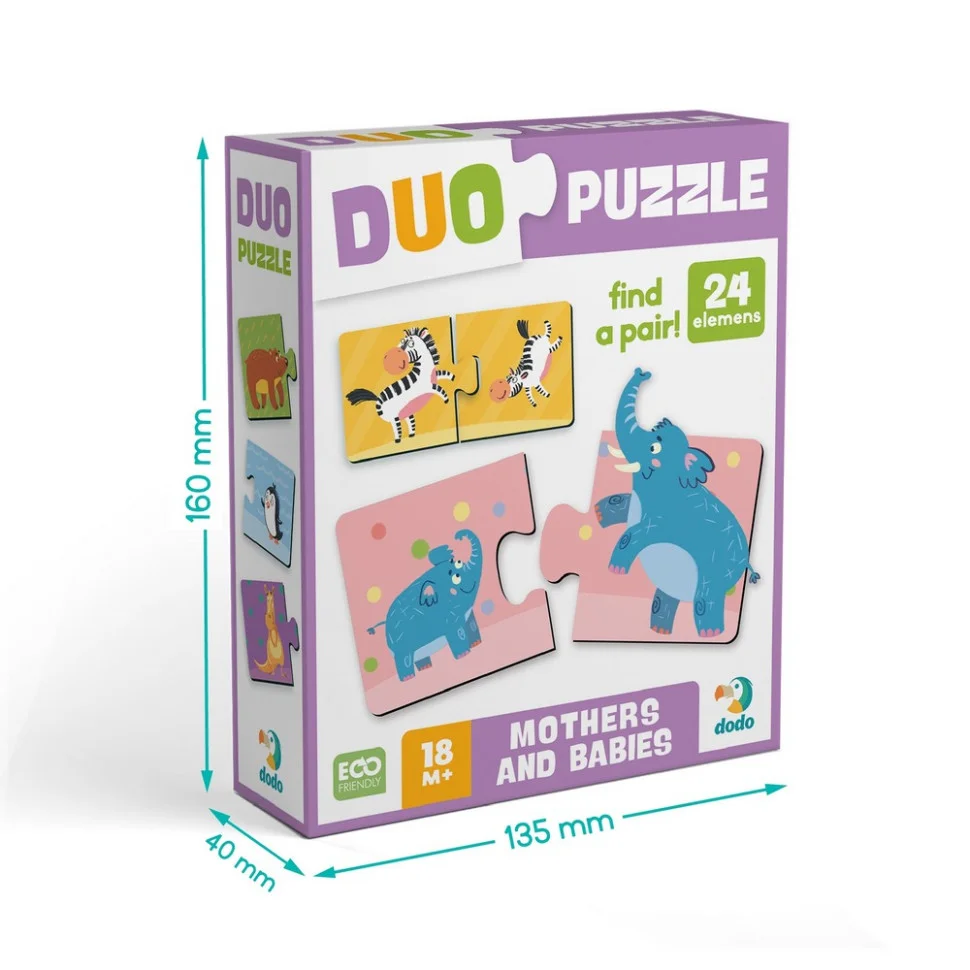 Пазл Dodo DUO “Мама і малюк” стане чудовим вибором для домашніх занять, розвитку в дитячому садку або як невеликий корисний подарунок для малюків. Якісні матеріали, милий дизайн і продумана навчальна концепція роблять його не просто іграшкою, а справжнім інструментом раннього розвитку, який дарує радість пізнання щодня.