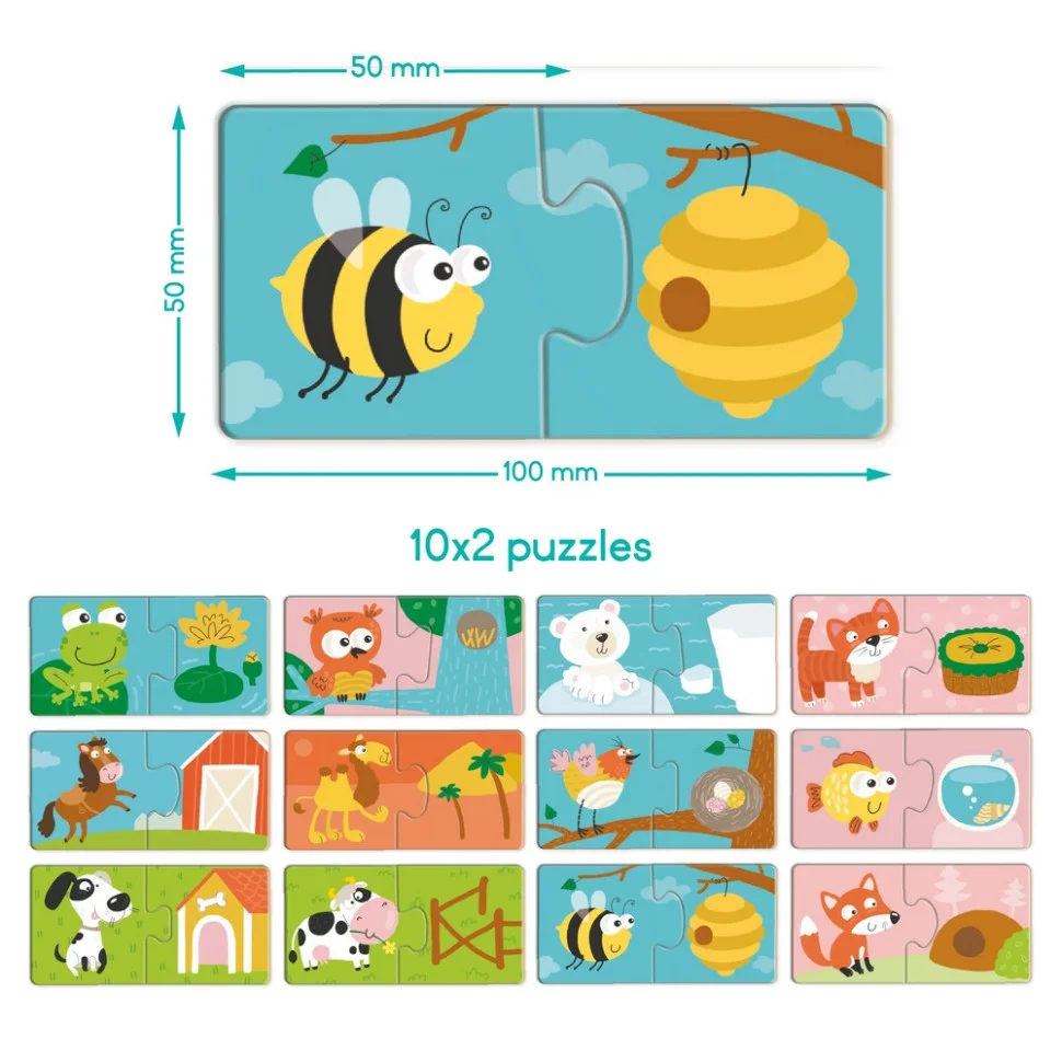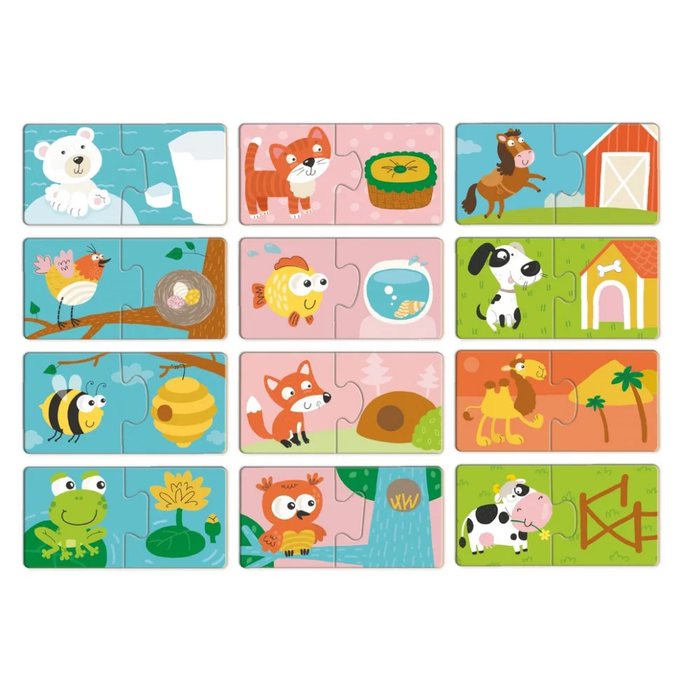 Малюк підбирає половинки пазлів, поєднуючи тваринку з її домівкою — і кожне правильне рішення викликає справжню радість відкриття