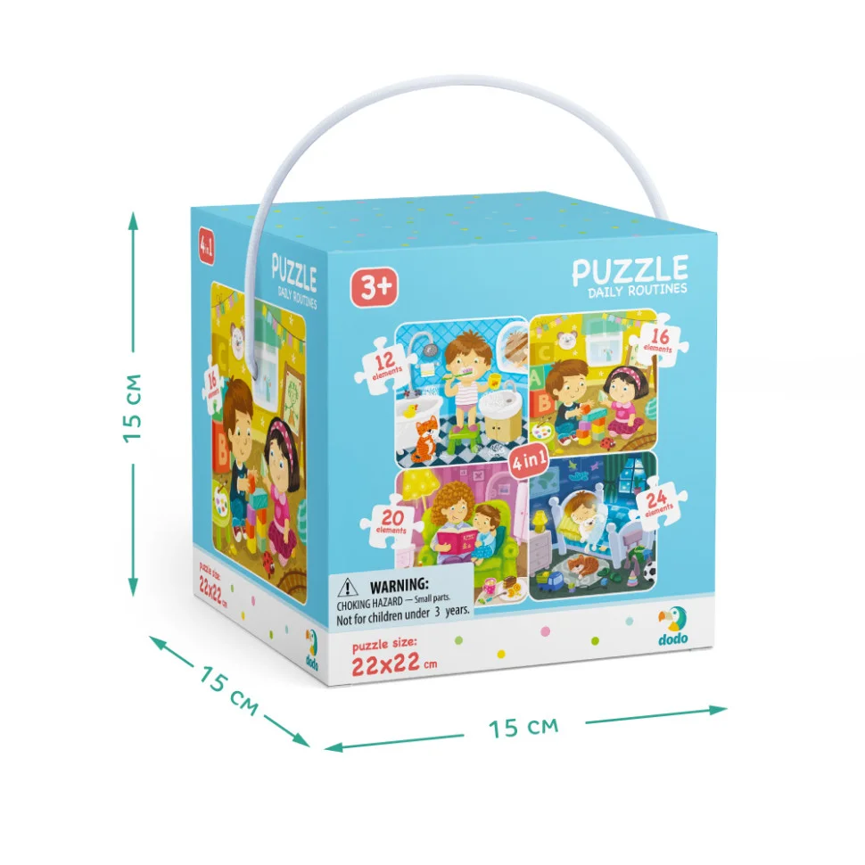 Пазл 4 в 1 "Мій день" української ТМ Додо в подарунковій об'ємній коробці-кубі з ручкою.