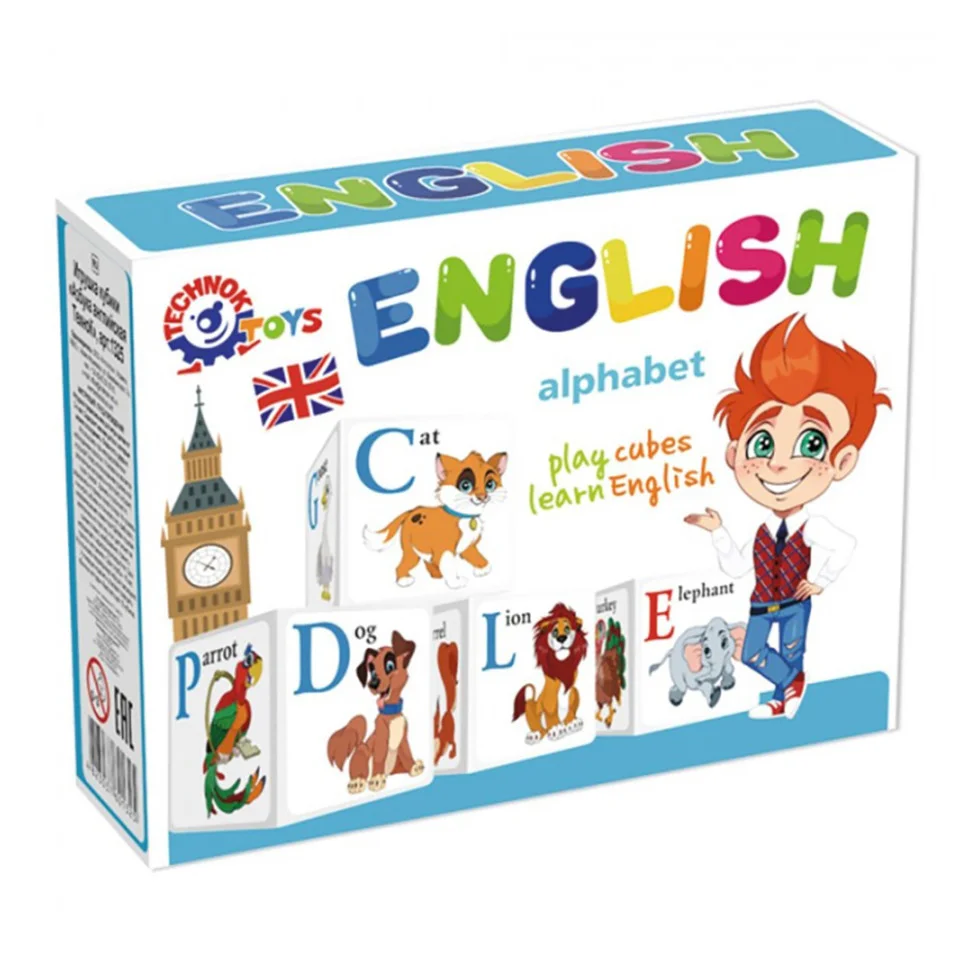 Іграшка кубики "Абетка англійська ТехноК" (арт. 1325) – це відмінний навчальний набір для дітей, який допоможе їм вивчити англійську абетку у веселій та інтерактивній формі. У наборі 12 кубиків, на кожному з яких зображені літери англійського алфавіту та відповідні картинки, що допомагають легко запам'ятати букви.