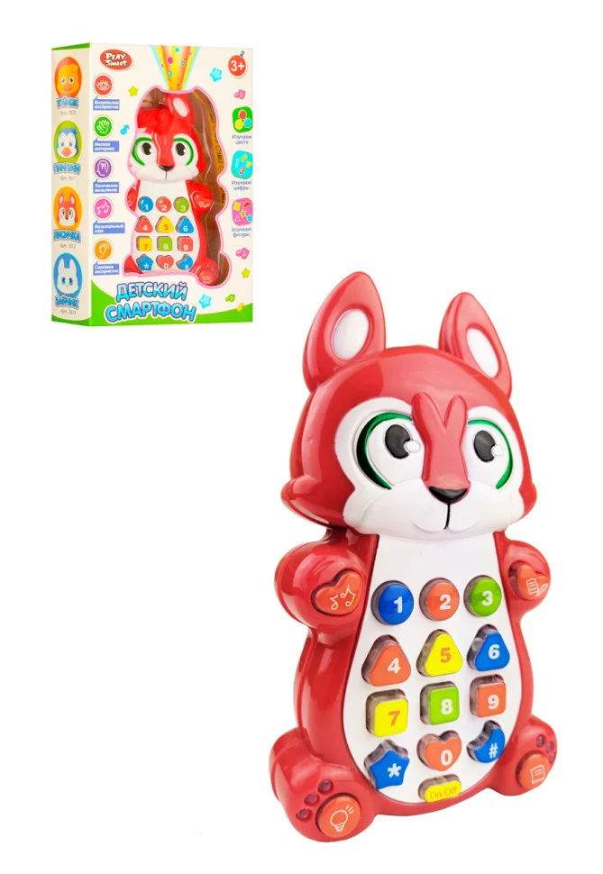 Телефон навчальний 7614, що володіє безліччю корисних функцій, відрізняється барвистим, привабливим дизайном. Кумедна розвиваюча іграшка представлена у вигляді милого звірятка, з яким Ваш малюк не побажає розлучатися ні на секунду. Міцний корпус, розроблений із зносостійкого, гіпоалергенного пластика, практично не має запаху і є абсолютно нешкідливим для дитячого здоров'я. Дитячий смартфон-звірятко розміром 14 см, з музичними ефектами українською мовою доповнений проектором. За допомогою іграшки Ваша дитина буде прослуховувати казки, вивчати цифри, віршики, нові кольори. Граючи і натискаючи на кнопки, дитина зможе самостійно активувати відтворення мелодій, розвиваючи дрібну моторику пальчиків і уяву. Завдяки вбудованому проектору Ваш малюк зможе направляти верхню частину телефону на чисту, білу поверхню, щоб подивитися зображення геометричних фігур і цифр.