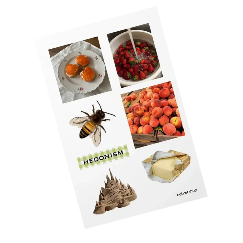 Ці вінілові стікери – справжня насолода для душі. Тут і солодкі персики, і медові бджілки, і вершкове масло, і навіть замок із піску – усе, щоб нагадати тобі, що життя створене для задоволень. Стікери ідеально пасують до ноутбука, телефону, щоденника чи навіть холодильника (бо хто ж проти закусити після кожного погляду на цю красу?).