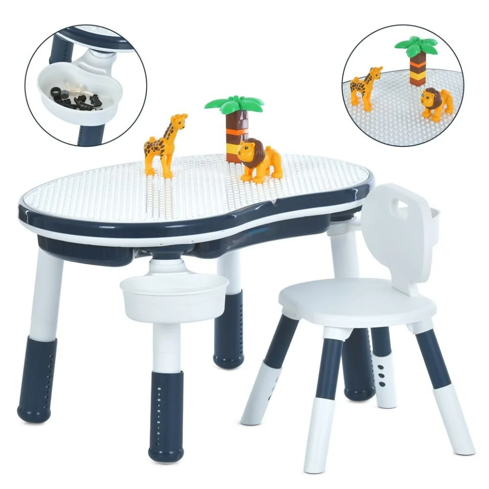 2-в-1: стіл та конструктор – поверхня підходить як для ігор з кубиками, так і для малювання або ліплення.