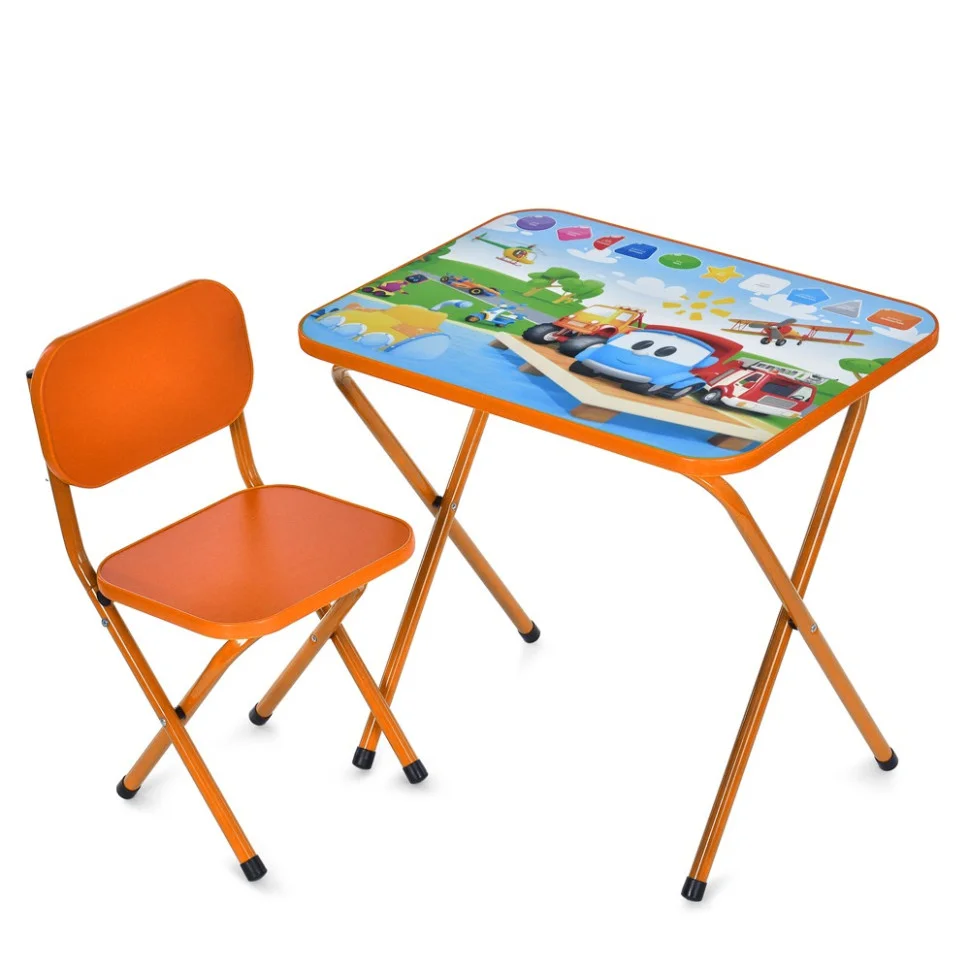 Дитячий столик Bambi зі стільчиком M 5962 - має гладку поверхню, що миється, з малюнком маленьких машинок спецтранспорту, столик має зручну і практичну конструкцію, висоту столика можна регулювати в залежності від росту дитини.