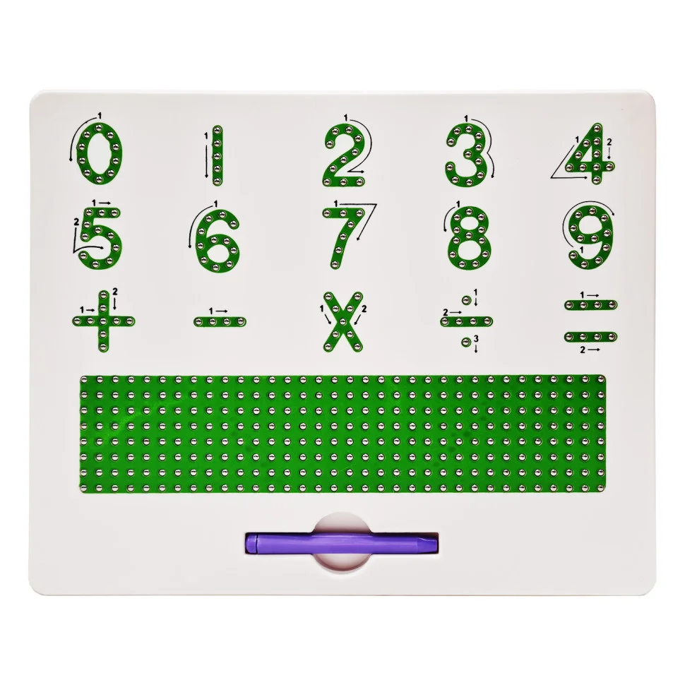 Магнітна дошка: числа в коробці. Матеріал - пластмаса. Використовуючи магнітну ручку, проводимо за стрілками, що вказані на дошці та тренуємо руку до письма та вивчаємо числа. Для дітей від 3 років. Розмір коробки: 32Х26.5Х2 см