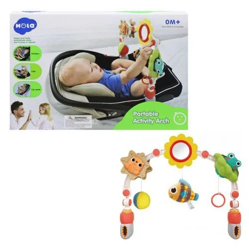 Гнучка дуга з брязкальцями на дитячу коляску, ліжечко або автокрісло. Надійне, прогумоване кріплення. Безліч цікавих елементів: