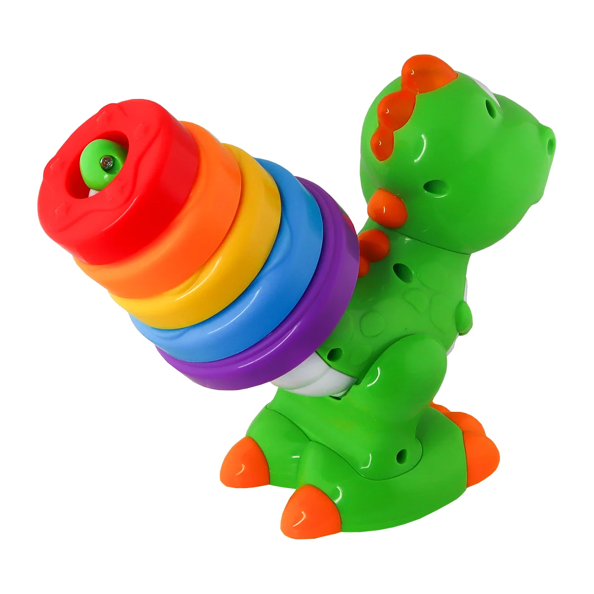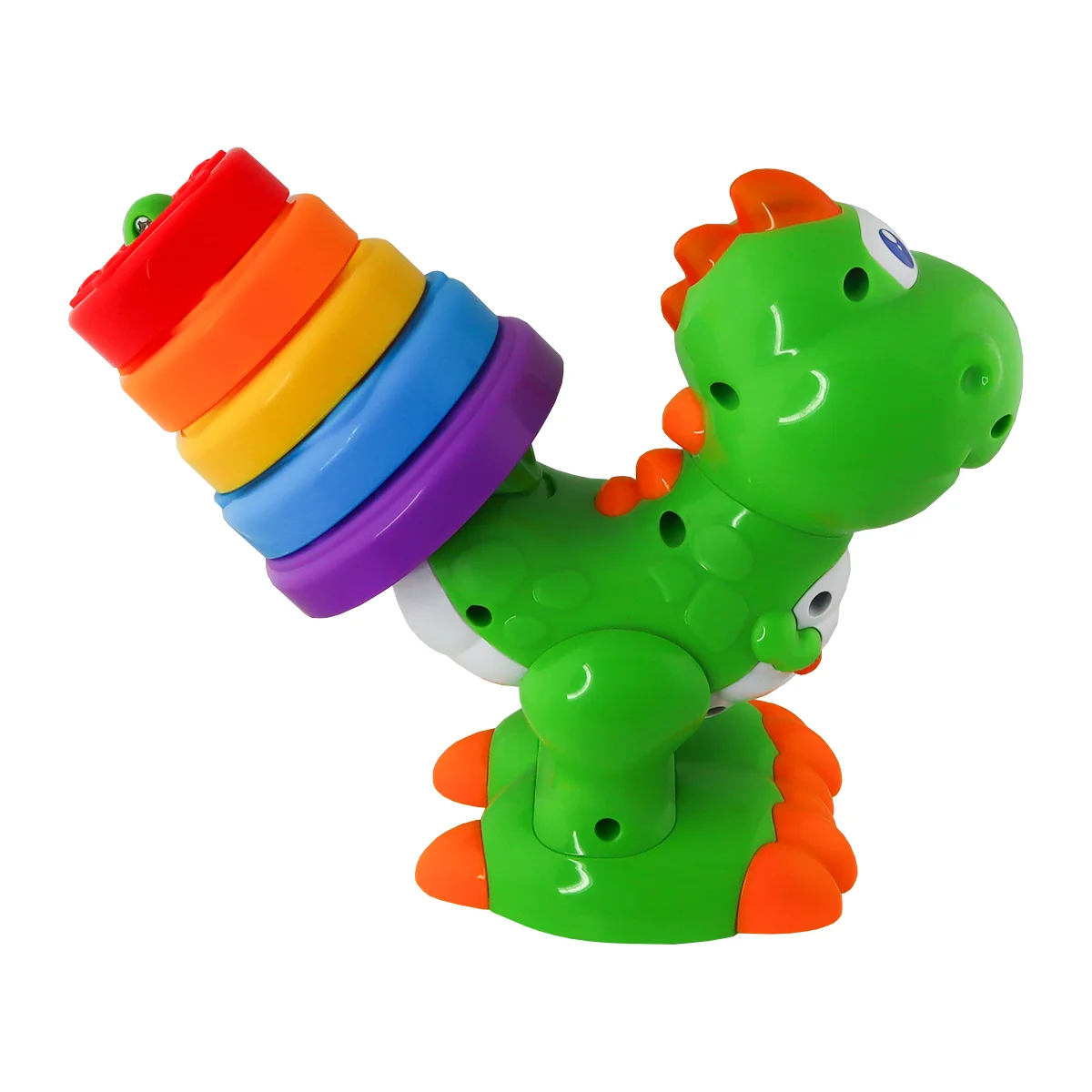 - Нахиліть голову динозавра донизу та відпустіть — усі кільця зістрибнуть у супроводі кумедних звуків.