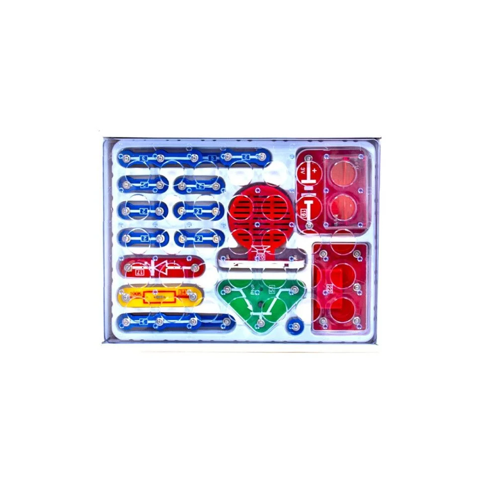 Конструктор пропонує 15 різних схем, для збору яких дитина зможе скористатися провідниками, елементами живлення, резистором і транзистором, збираючи їх і відкриваючи для себе багато нового і цікавого, при цьому не використовуючи небезпечний метод паяння.