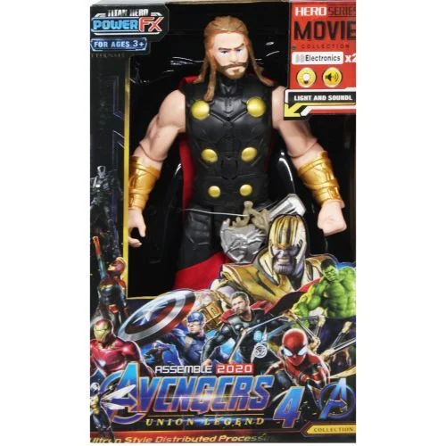Фігурка у вигляді супергероя всесвіту "Марвел", фільму "Месники". Виконана із пластику, добре деталізована. Руки та ноги рухливі. Зі світловими і звуковими ефектами (світиться лампочка на грудях, звуки битви). Висота фігурки – 30 см. Для дітей від 3-х років.