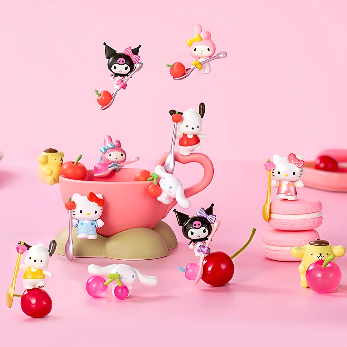 - В асортименті 12 унікальних фігурок з рожевими або червоними вишеньками: Hello Kitty, Pochacco, My Melodу, Kuromi, Cinnamoroll та Pompompurin. Зберіть всю колекцію стильних друзів!