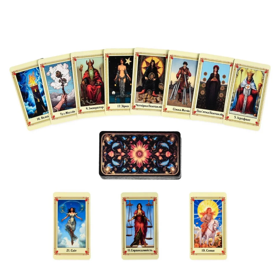 «Strateg Таро» — набір для тих, хто шукає відповіді за межами очевидного. У колоді — карти зі старшими й молодшими арканами, що допоможуть зазирнути в минуле, зрозуміти теперішнє й відчути майбутнє.