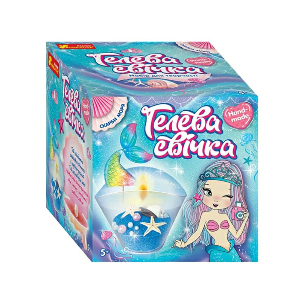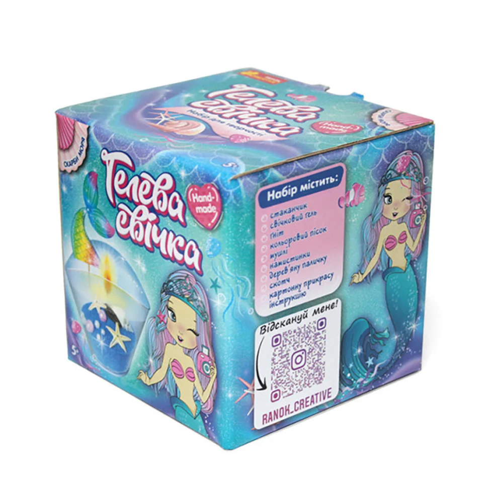 Тобі подобається загадковий світ моря й чарвівних русалок? Тоді цей набір для тебе! Створи незвичайну свічку в морському стилі своїми руками! За допомогою цього набору для творчості не тільки розкриєш секрети виготовлення гелевих свічок, а й прикрасиш свій будинок! Казкова свічка в морському стилі стане найкращим подарунком для маленьких та дорослих принцес!