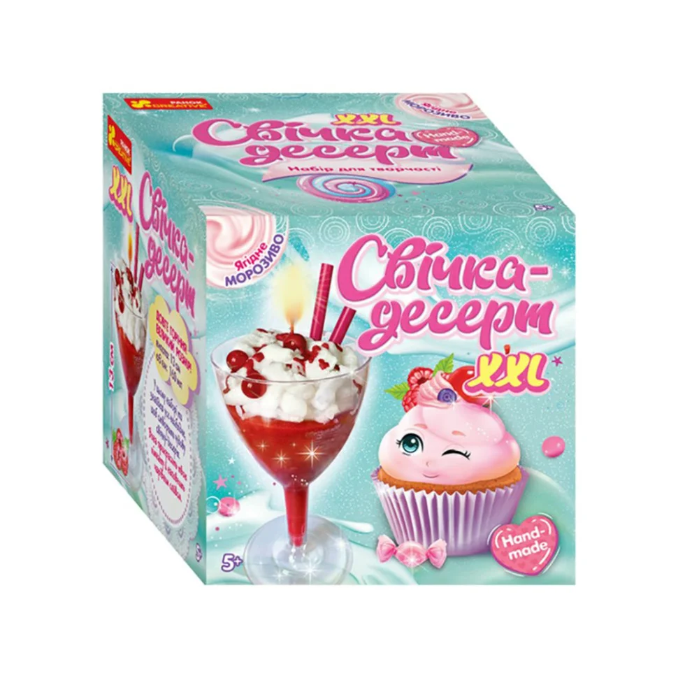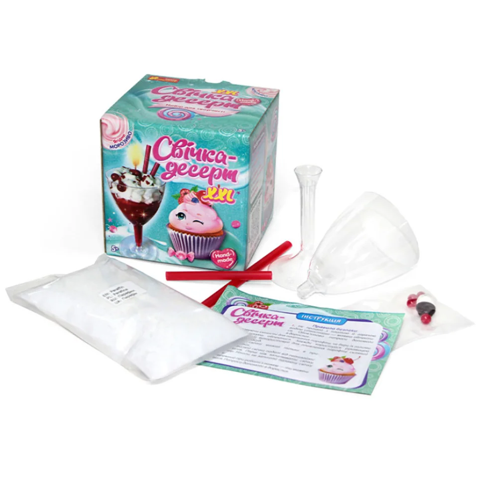 Довге горіння! Великий розмір - 13 см!Об'єм - 160мл! Створи свічку-десерт своїми руками! За допомогою цього набору для творчості не тільки розкриєш секрети виготовлення гелевих свічок, а й прикрасиш свій будинок! Казкова свічка у вигляді солодощів стане незвичайним подарунком для маленьких та дорослих ласунів. У цьому наборі ти знайдеш все необхідне для створення чудової свічки.