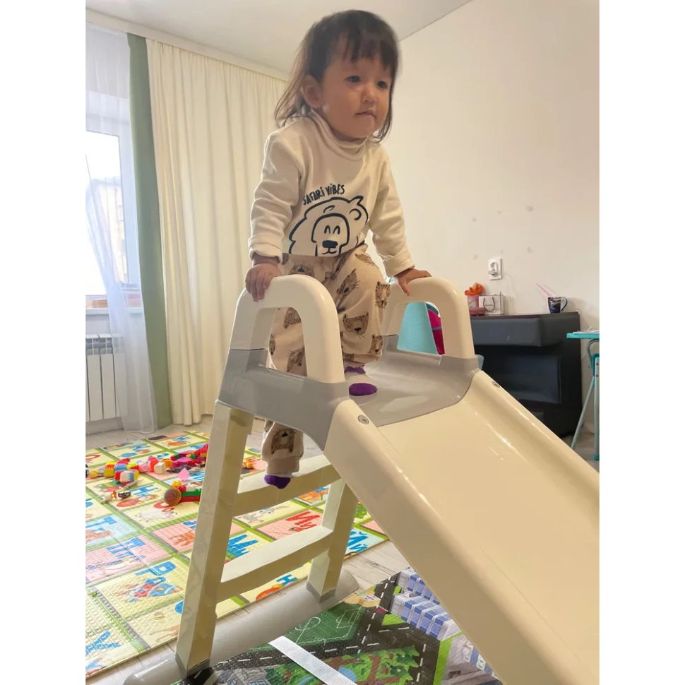 Дитяча гірка для найменших призначена для встановлення як удома, так і на вулиці, майданчику або у великому приміщенні. Зроблено гірку з високоякісного пластику та відповідає всім вимогам безпеки. Оснащена бортиками, що перешкоджають падінню дитини. Має яскравий дизайн, має просту конструкцію. Ця гірка може стати відмінним доповненням до активних ігор у літню пору року.
