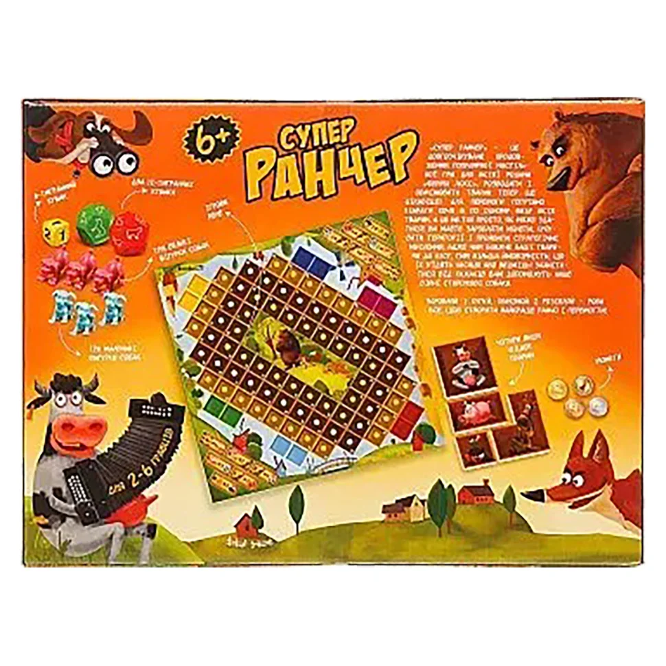 Настільна гра «Супер-ранчер» створена для розвитку цілеспрямованості, економічного і логічного мислення. Всі написи та пояснення до неї українською мовою, що дозволяє дітям краще його вивчити.