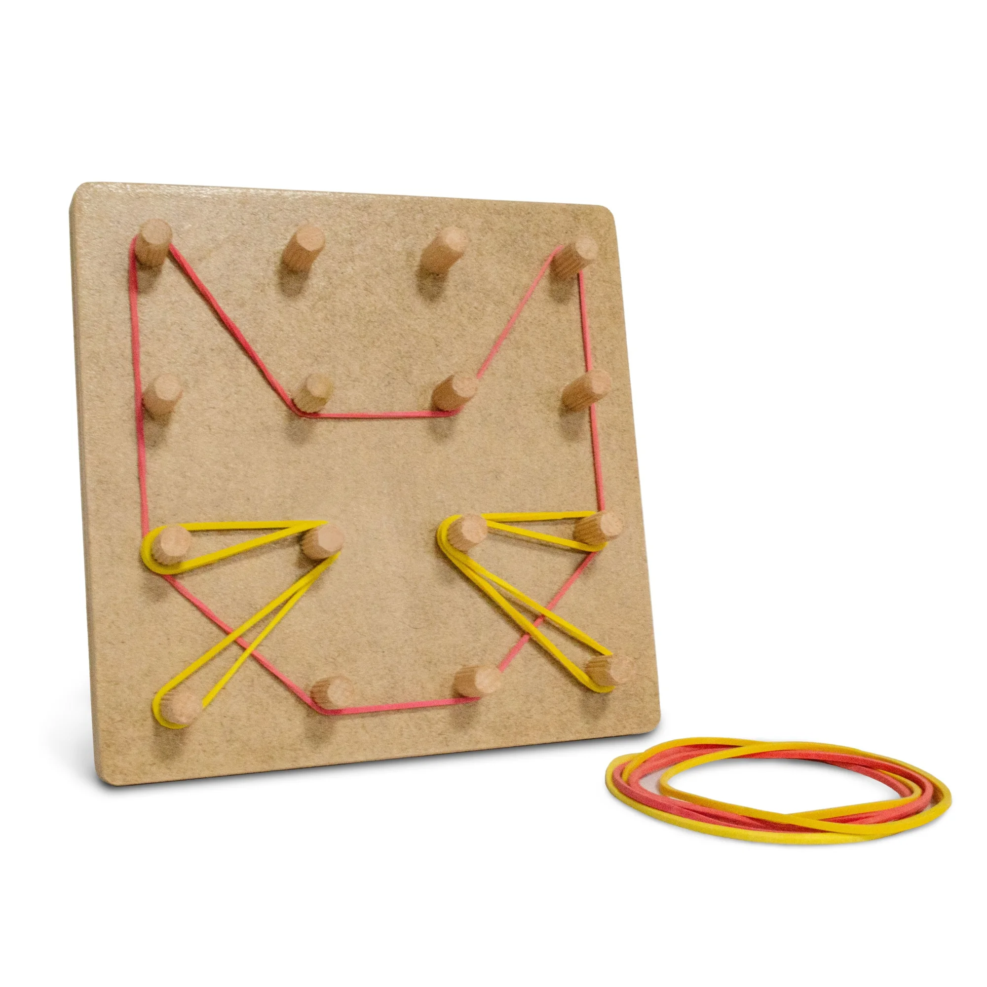 Математичний планшет 4×4 - багатофункціональна геометрична дошка для створення плоских зображень та перших кроків у математиці. Іншими словами - це дерев’яна дошка з кольоровими резиночками для нанизування
