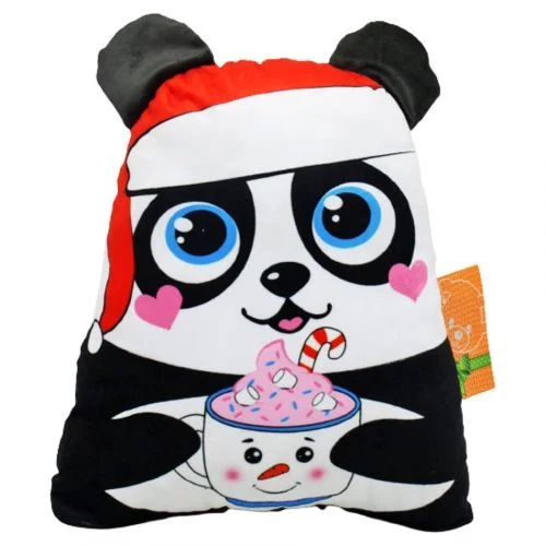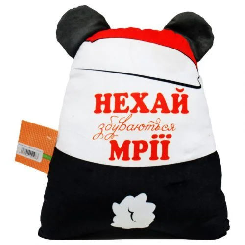 Мила іграшка-подушка у вигляді пандочки, яка тримає в руках чашку з напоєм. На звороті напис українською "Нехай збуваються мрії". Дуже приємна на дотик. Виготовлена із якісних та безпечних матеріалів. Висота іграшки: 36 см.