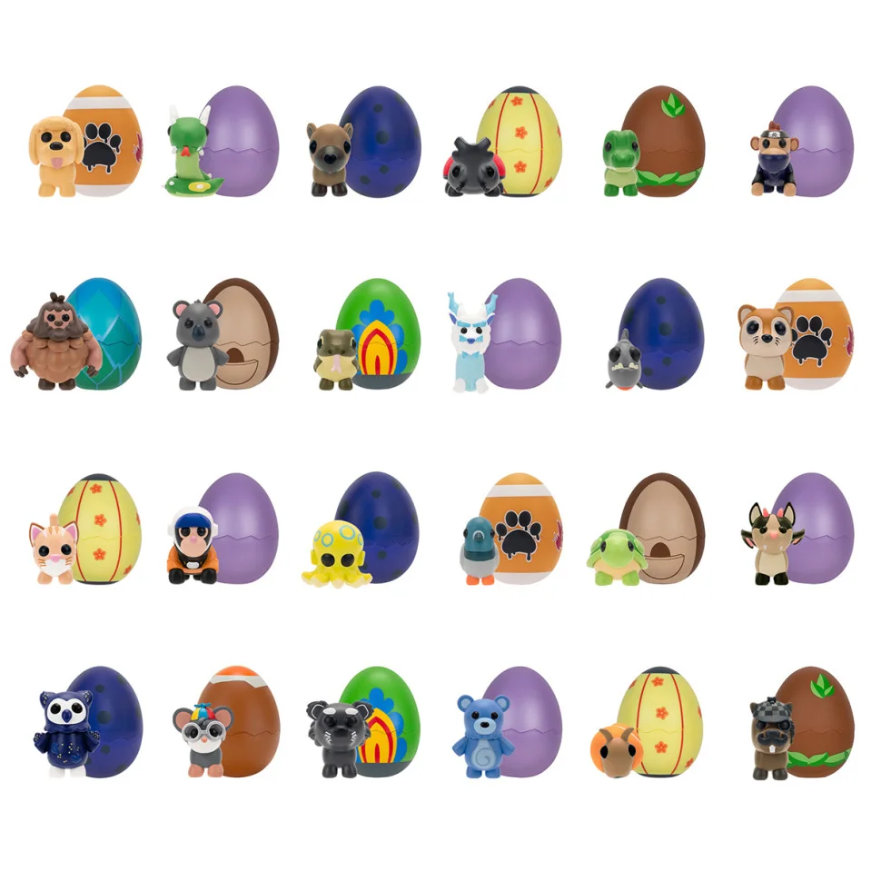 Оживіть дивовижні тварини з популярної гри Adopt Me! Збирайте різні яйця Adopt Me, вони підкажуть вам героя, якого Ви відкриєте. Розпакуйте яйце, а потім зануріть у воді, щоб його розкрити і знайомтеся з новим гарненьким другом! Яка тварина Вам більше подобається? У цій серії Ви можете знайти черепаху, скельного голуба, капібару, мангуста та багато інших цікавих тварин! Як бонус кожна іграшка містить ексклюзивний код віртуального предмета! Ці колекційні звірята варіюються від звичайних до легендарних та ідеально підходять для обіймів та веселих ігор. Зберіть їх усіх!