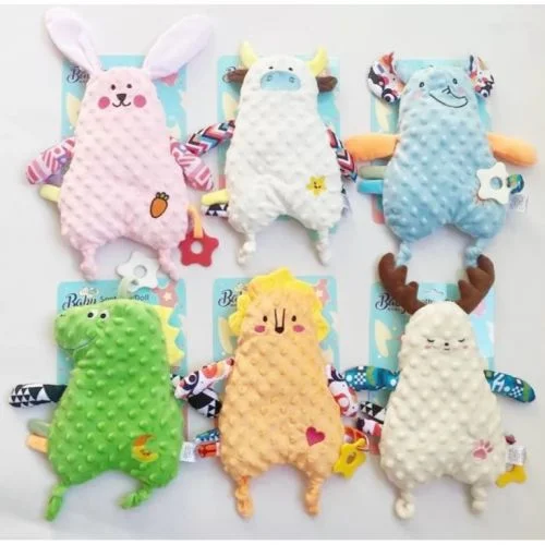 Мила тактильна іграшка у вигляді кумедної тваринки обовʼязково сподобається малюку. Мʼяка, приємна на дотик, має різноманітні тактильні деталі: шурхотілка, гумова підвіска, вузлики, пупирки на поверхні тканини. Усі шви на виробі міцні та надійні. Розмір: 27х17х4,5 см.