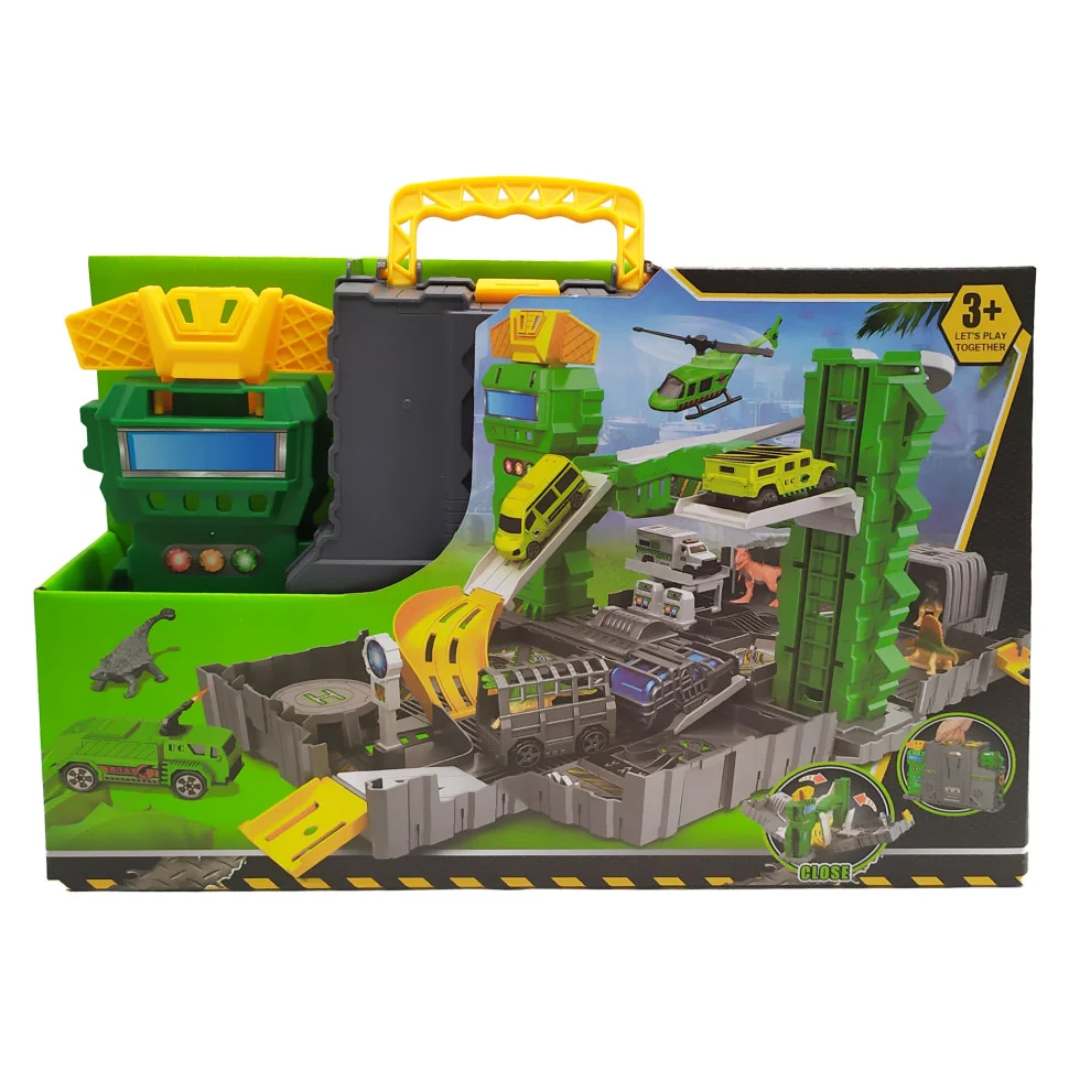 О, це звучить цікаво! Іграшковий автопарк із динозаврами - чудова ідея для гри! У такому наборі ви отримаєте 3 різних динозаври і 1 фургон з причепом, призначеним для перевезення динозаврів.
