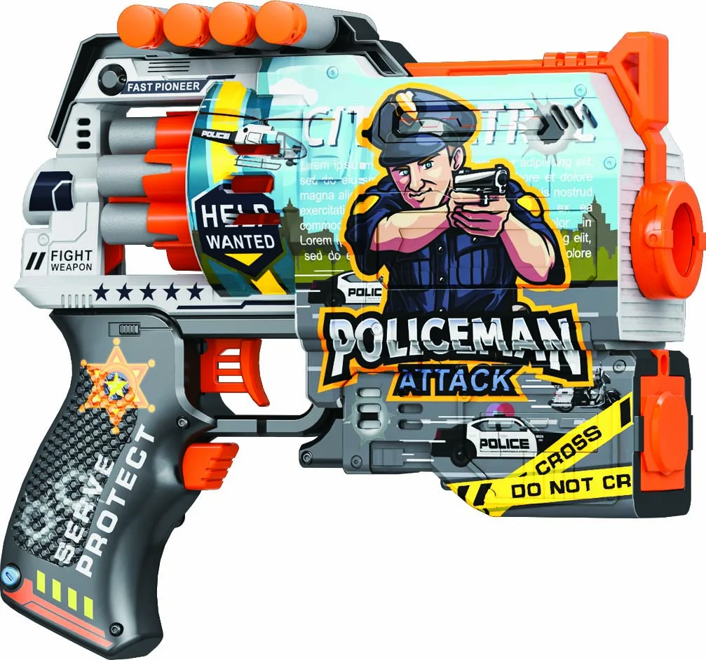 Іграшковий пістолет автомат. барабан на батар. з м'як. набоями Поліцейська Атака (12 шт.)(21х19см)