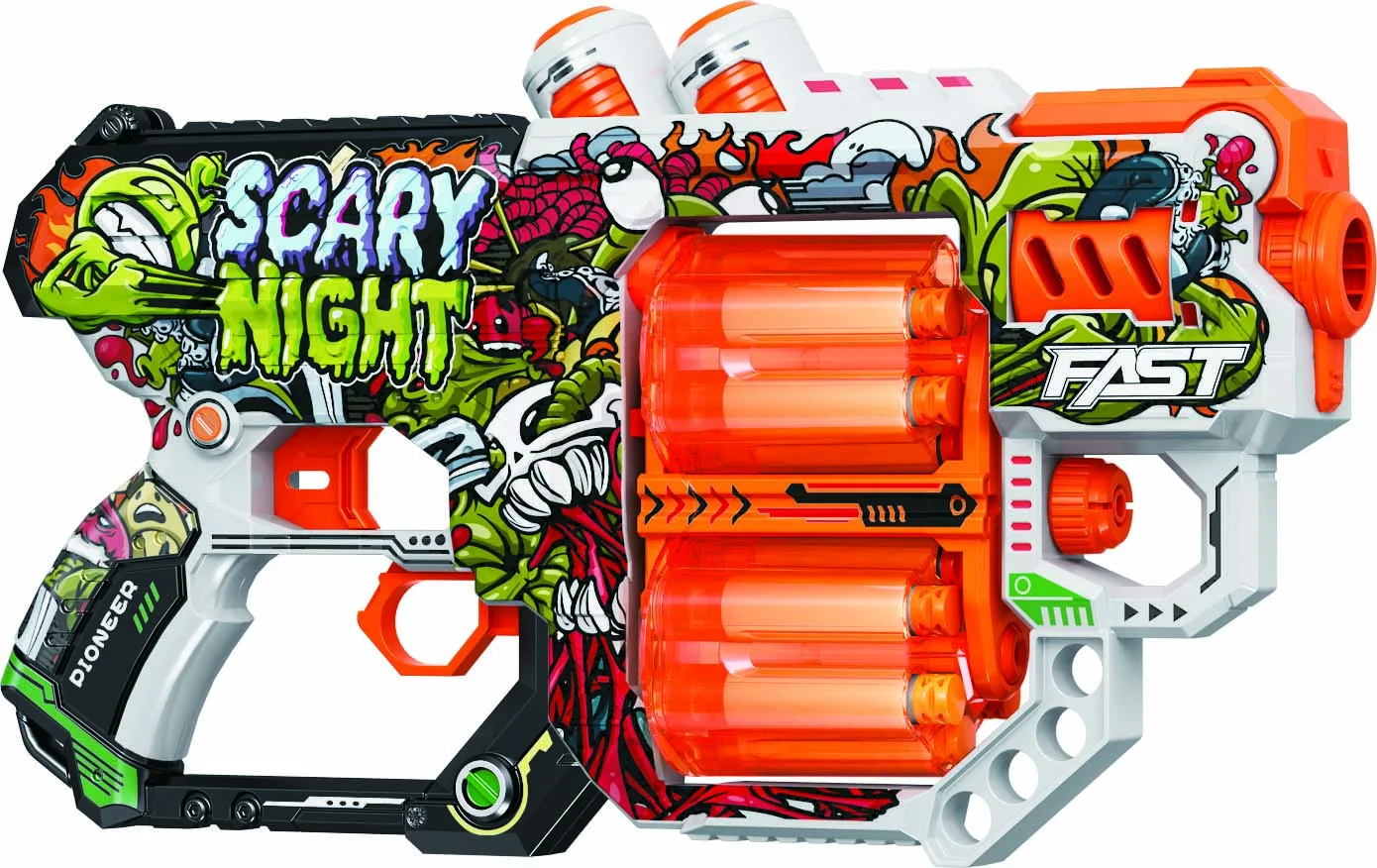 Іграшковий пістолет мех. з подвійним барабаном та м'як. набоями (12 шт.) (Ніч Страху)(31.5 х 18.5см)