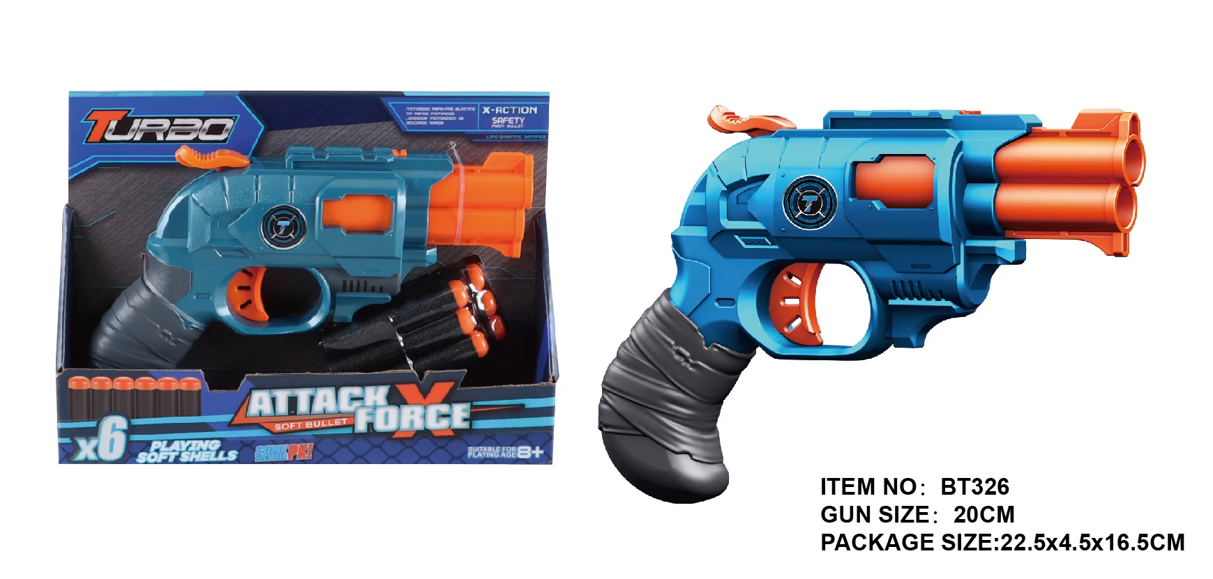 Поглибіться в захоплюючий світ пригод з іграшковим бластером "Пістолет механічний з подвійним дулом" Turbo ВТ326! Цей унікальний бластер вражає своєю механічною системою запуску, що дозволяє стріляти на відстань до 10 метрів. У комплекті йдуть 6 м'яких кулі, що дозволить вам відразу ж почати гру.