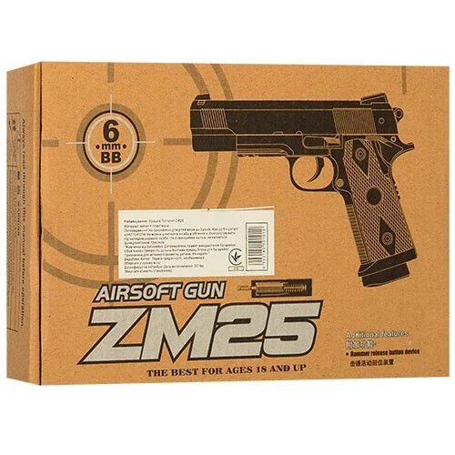 Пістолет ZM25 Метал з патронами, візуально неймовірно нагадує справжню зброю, стане чудовим подарунком для хлопчика від шести років. Ваш активний непосида буде тренувати спритність, влучність, уважність, використовувати іграшку в сюжетно-рольових іграх. Дитині буде цікаво вигадувати захоплюючі сюжети, відтворювати улюблені історії з фільмів і серіалів, що посприяє розвитку пам'яті, уяви та координації рухів. Модель іграшкового пістолета виготовлена із зносостійкого матеріалу - обтяженого пластика високої якості, який на дотик складно відрізнити від металу. Пістолет стріляє пластмасовими кульками 6 мм з дальністю пострілу до 30 метрів, магазин вміщує 9 куль. За допомогою такої іграшки дитина буде уявляти себе справжнім секретним агентом, виконувати різні завдання, влаштовувати ігри в війнушки з друзями у дворі. Під час гри не рекомендується націлюватися на тварин і людей, а також така іграшка не підійде для маленьких діток. Легкий, компактний розміром 17 х 12 х 3 см пістолет укомплектований картонною коробкою розміром 21,5 х 15,5 х 4 см.