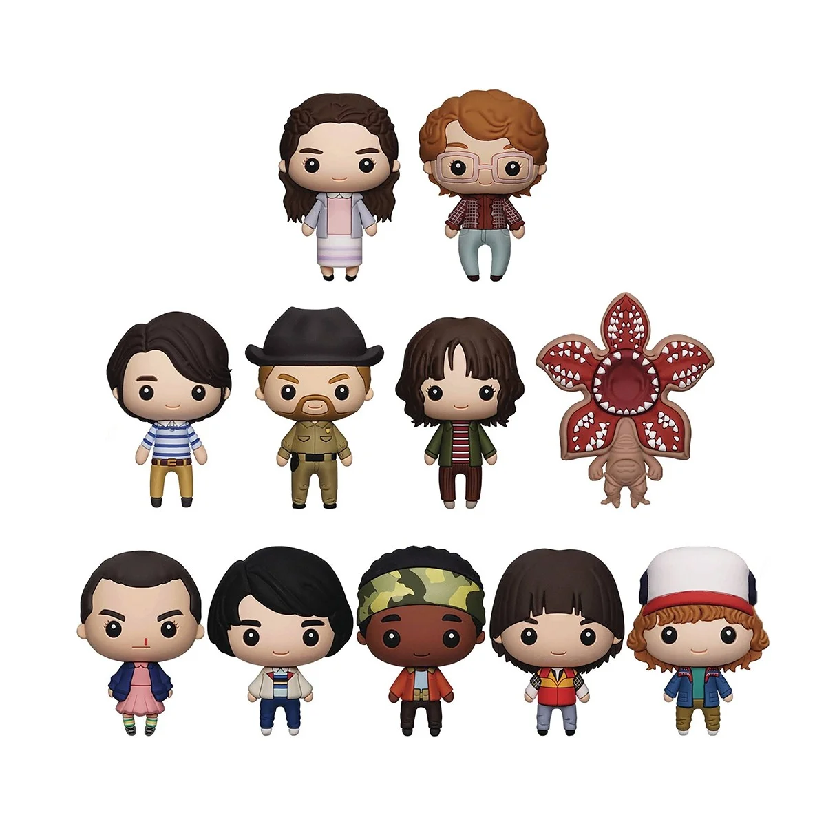 - В асортименті 11 головних героїв з яких 2 рідкісних: Одинадцять, Майк Вілер, Лукас Сінклер, Вілл Баєрс, Дастін Хендерсон, Стів Гаррінґтон, Джим Гоппер, Джойс Баєрс, Демогоргон, Ненсі Вілер (рідкісна) і Барбара Голланд (рідкісна).