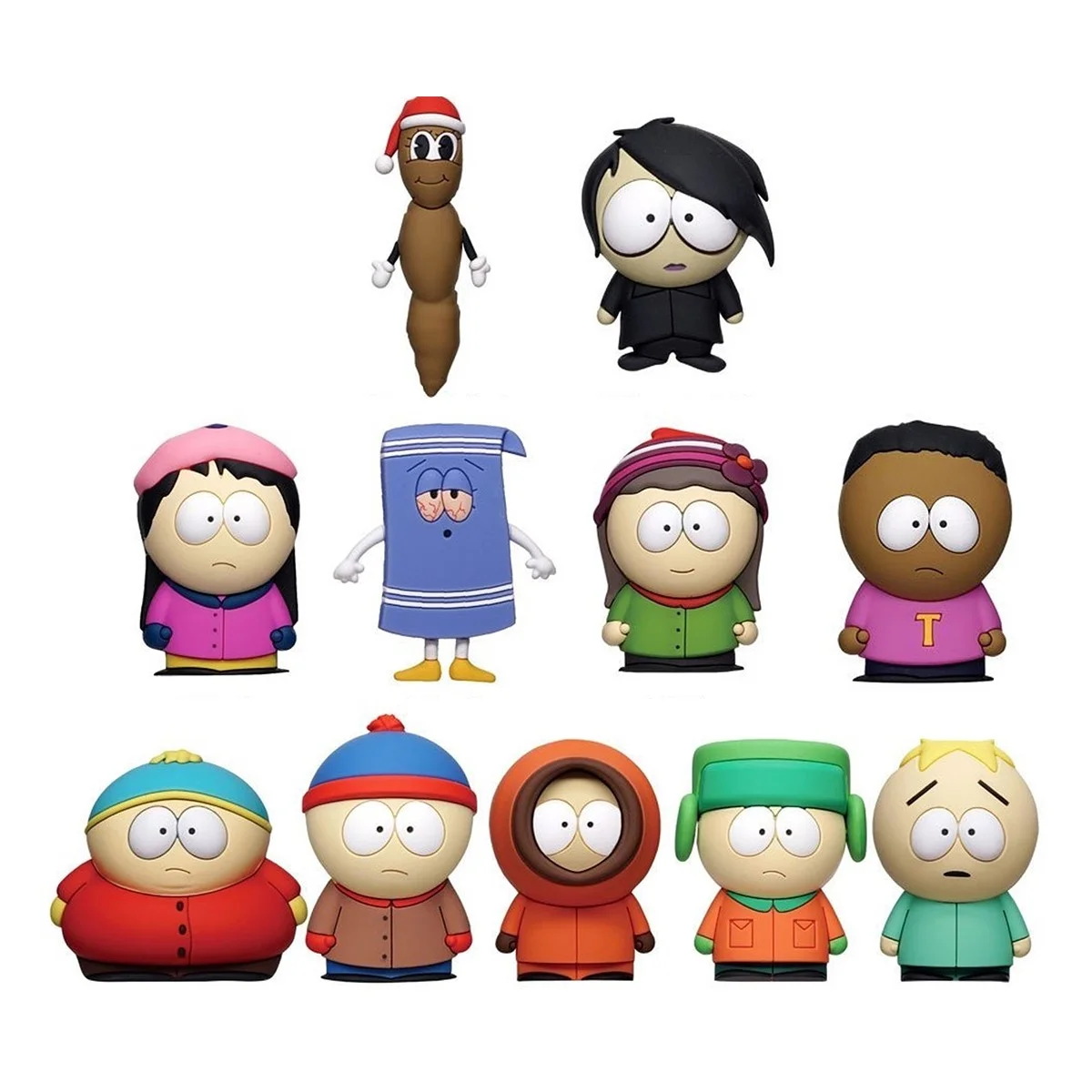 - В асортименті 11 головних героїв з анімаційного серіалу «Південний парк», з яких 2 рідкісних: Картмен, Стен, Кенні, Кайл, Батерс, Токен, Венді, Рушничок, Хайді, Містер Генкі (рідкісний) і Дитина-гот (рідкісна).