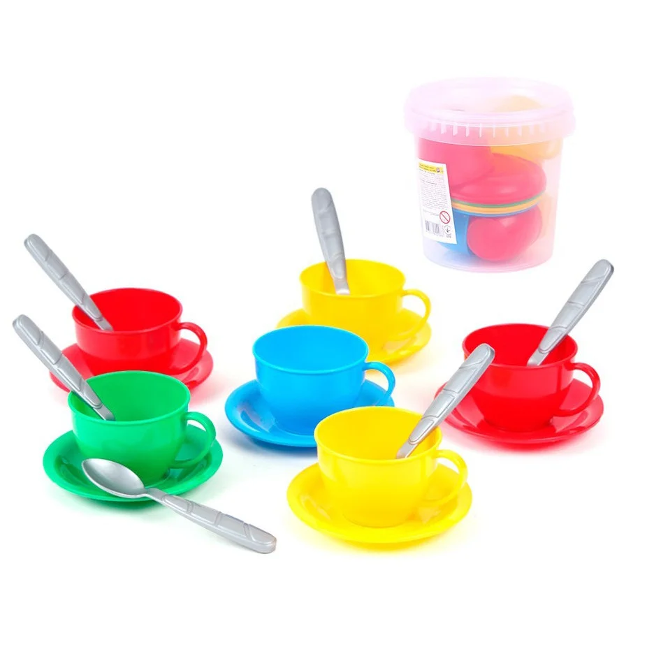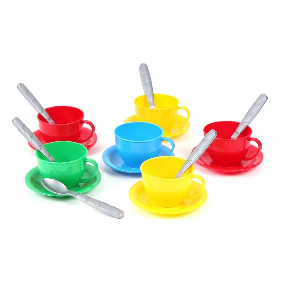 Незамінна іграшка для чаювання маленьких господинь. Складається з чашок, тарілок та ложок для 6 осіб.