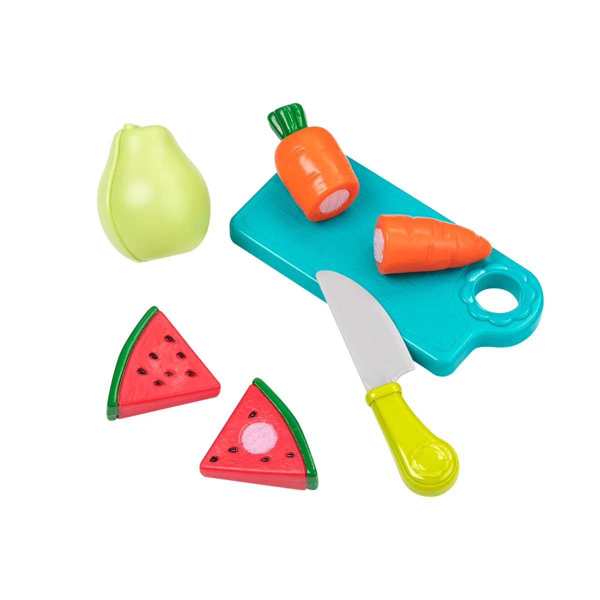 - Фрукти і овочі на липучці, їх можна розрізати пластмасовими ножами та з'єднувати назад;
