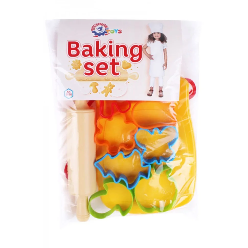 У наборі від ТехноК є все необхідне для перших кондитерських шедеврів: 8 кольорових формочок, дощечка і качалка. Можна вирізати тістечка різної форми, вибравши що Вам подобається. З такою іграшкою Ваш малюк відчує себе професійним шеф-кухарем, оскільки в наборі є білий фартух і справжній кухарський ковпак. На допомогу мамі додаємо рецепт смачної випічки. Тістечка з шоколадом, горішками або родзинками - вирішувати це тільки маленькому шефу!