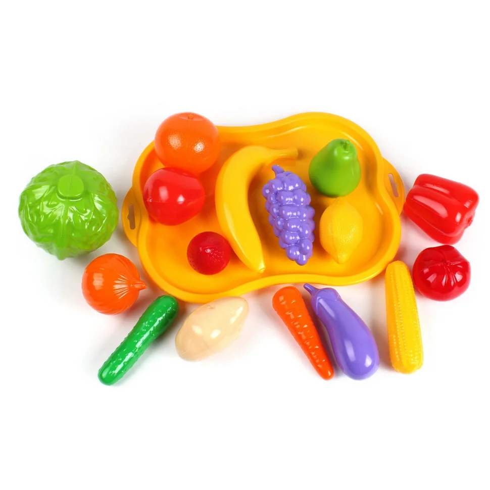 Зустрічайте нову іграшку, задовольнить бажання і дітей, і дорослих. Цікавий набір яскравих фруктів і овочів допоможе дитині вивчити форми, кольору, запам'ятати назви різних продуктів. Іграшкові фрукти, овочі можна використовувати самостійно або залучати їх до інших ігор (магазин, ресторан, візит гостей, сад-город і т. д.). У наборі є спеціальна піднос, яка чудово доповнює іграшкову їжу і різноманітить гри з нею.