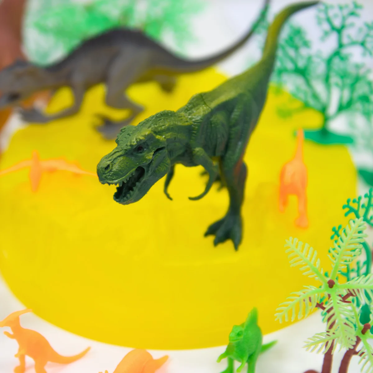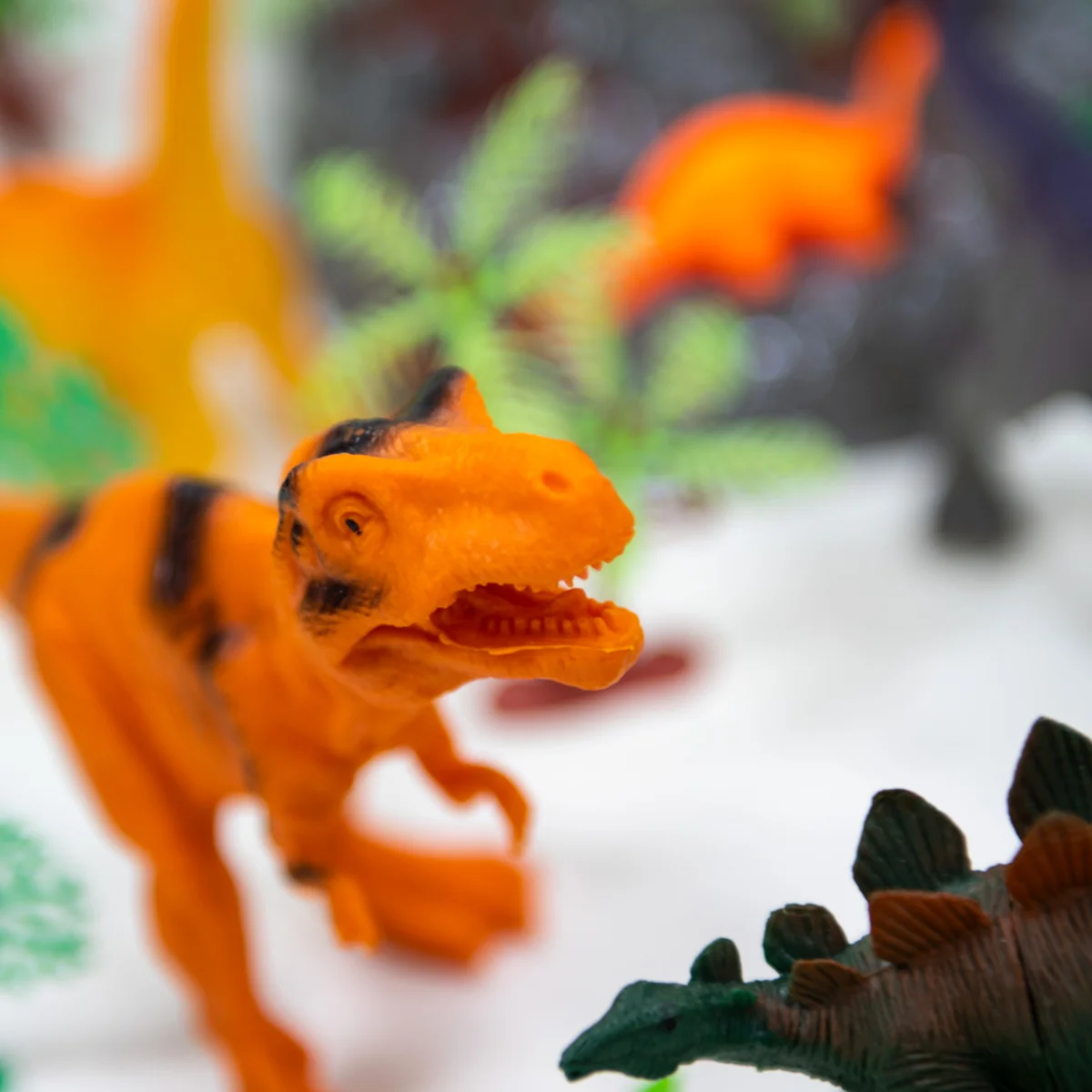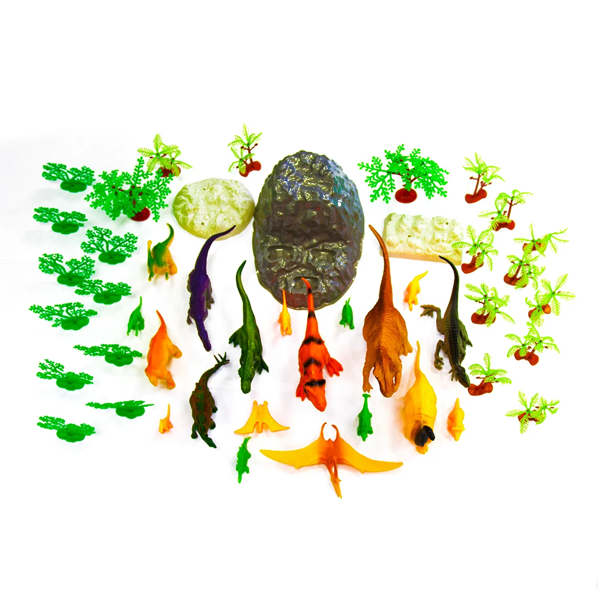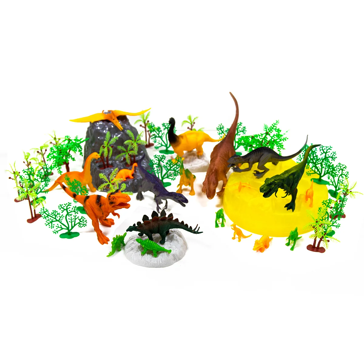 - 45 предметів! Тиранозавр, птеродактиль, стегозавр та інші динозаври! А ще дерева та кущі для створення навколишнього середовища.