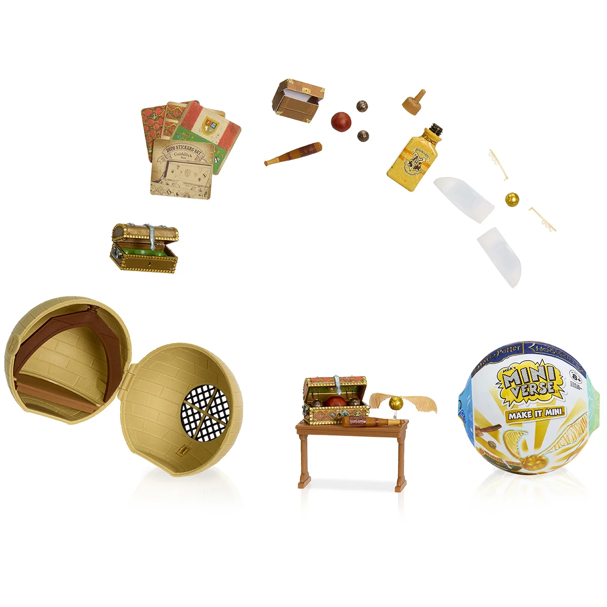 - Розпакуйте! Кожна кулька містить реалістичні іграшкові міні"елементи" для створення власної мініверсії чарівного предмета! Вони діляться на категорії: догляд за магічними істотами, травознавство, ворожіння, квідич та необхідне для Гоґвортсу. Який саме набір вам дістанеться — дізнаєтеся лише після розпакування!