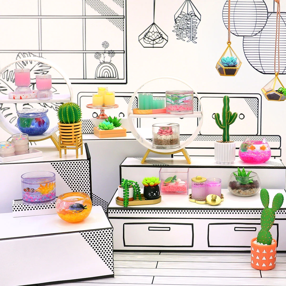 - Збирайте! На цьому веселощі не закінчуються! Мініаксесуари та пакування дуже милі для колекціонування. Від мініверсії кольорових камінців у акваріум до підсвічника та кактусів - у серії "Mini Lifestyle" є понад 60 унікальних елементів, пакування та аксесуарів, які ви можете колекціонувати. Створіть свій власний світ міністиль затишку!