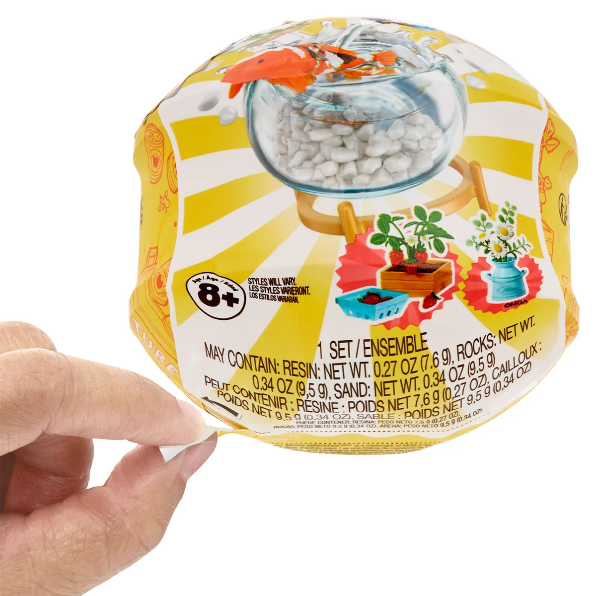 - Розпакуйте! Кожна кулька містить реалістичні мініатюрні елементи саду й городу: квіти, овочі й навіть мініакваріуми! Який саме набір вам дістанеться — дізнаєтеся лише після розпакування!