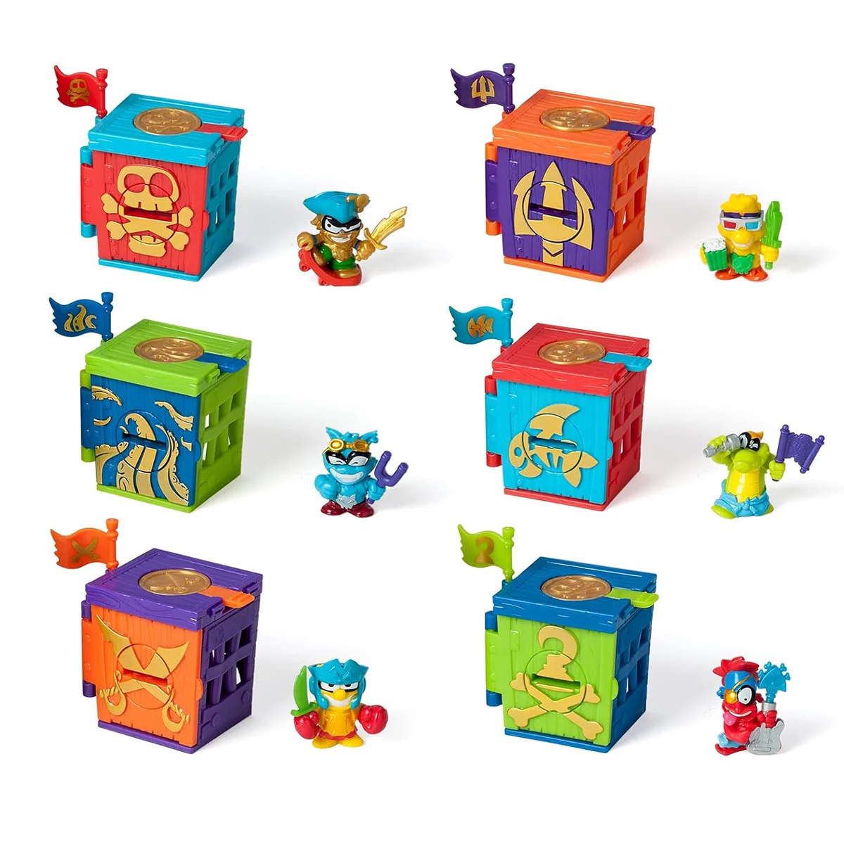 - Усього є 6 видів наборів з різними героями-піратами, їхніми фортецями та гарматами. Зберіть усі, щоб знайти усіх піратів і їхні скарби!