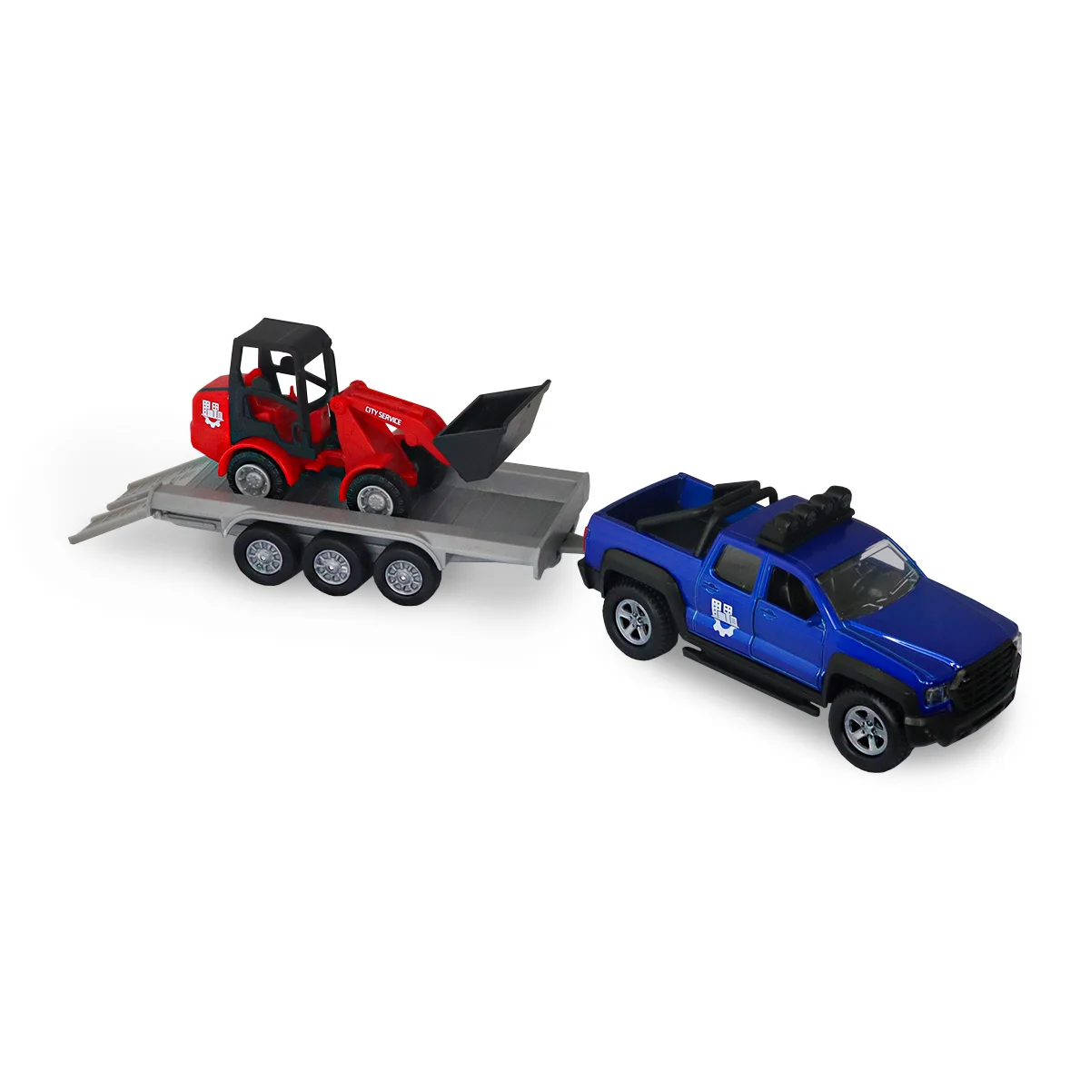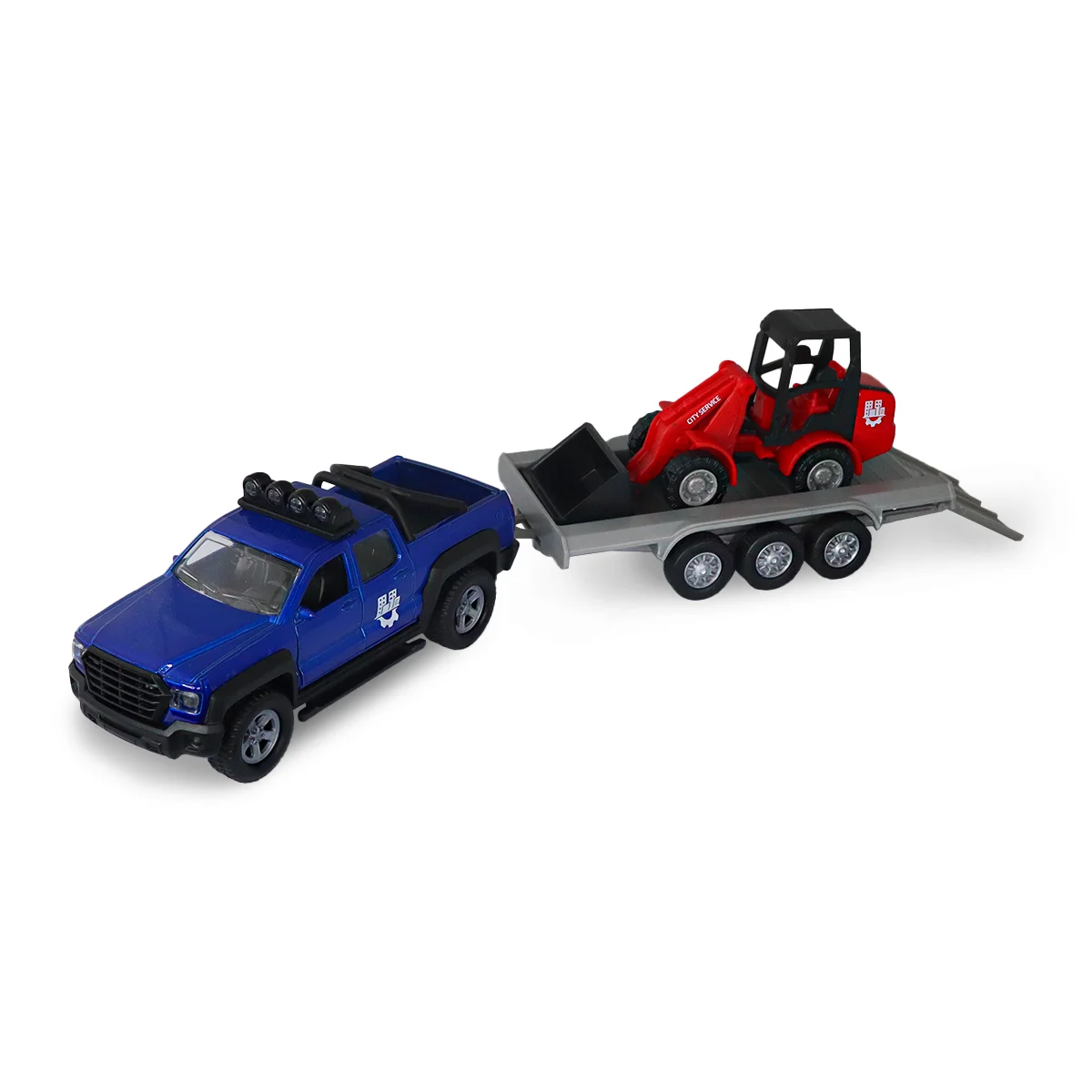 Ігровий набір - ПОЗАШЛЯХОВИК З ПРИЧІПОМ І НАВАНТАЖУВАЧЕМ – можливість подарувати радість знайомства зі світом автомобілів. Ці ігрові моделі створені, щоб сподобатися як малюкам, так і дорослим!