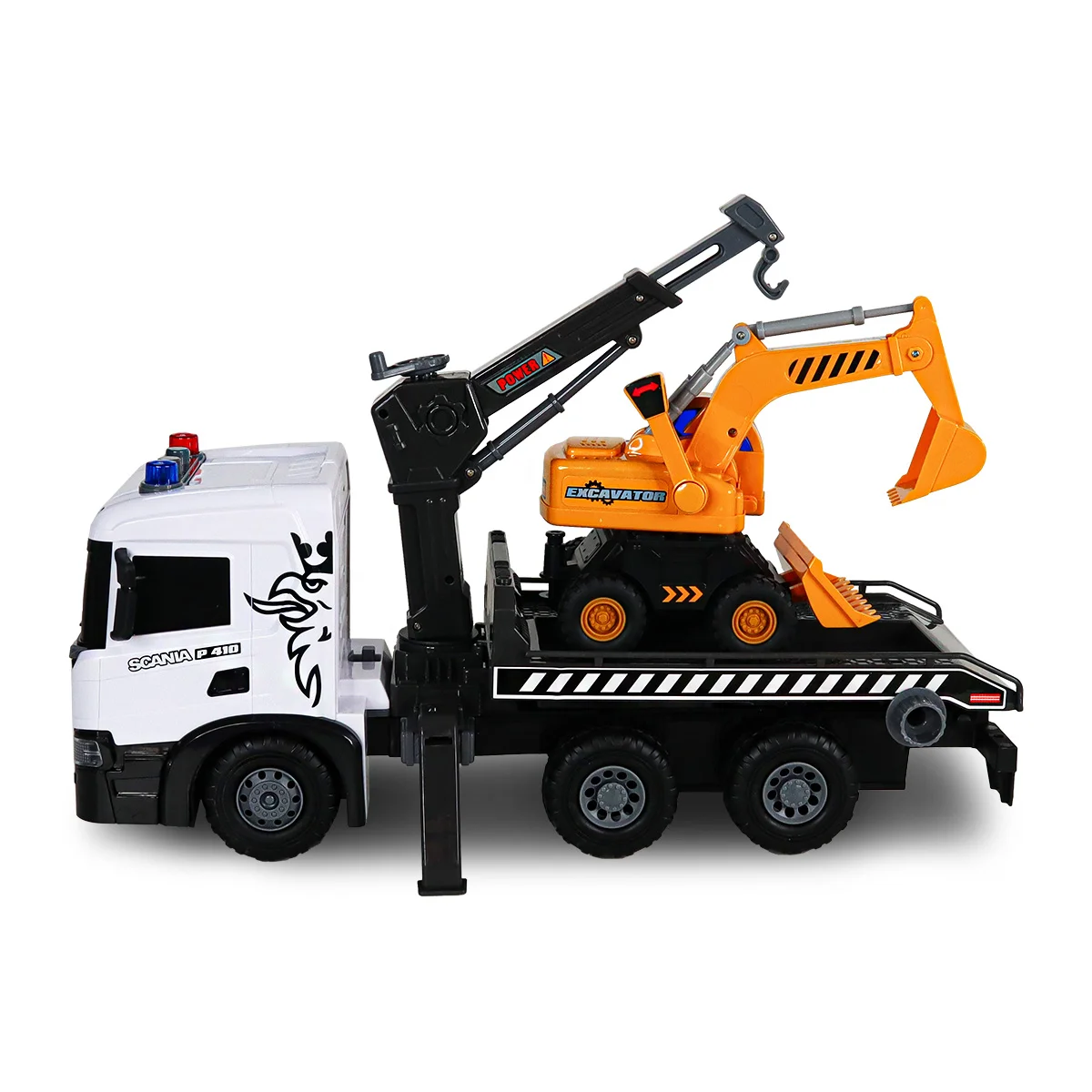 Автомодель серії "Super Big Truck" – АВТОКРАН SCANIA З ЕКСКАВАТОРОМ відкриває захопливий світ міської техніки. Ці ігрові моделі створені, щоб сподобатися як малюкам, так і дорослим!