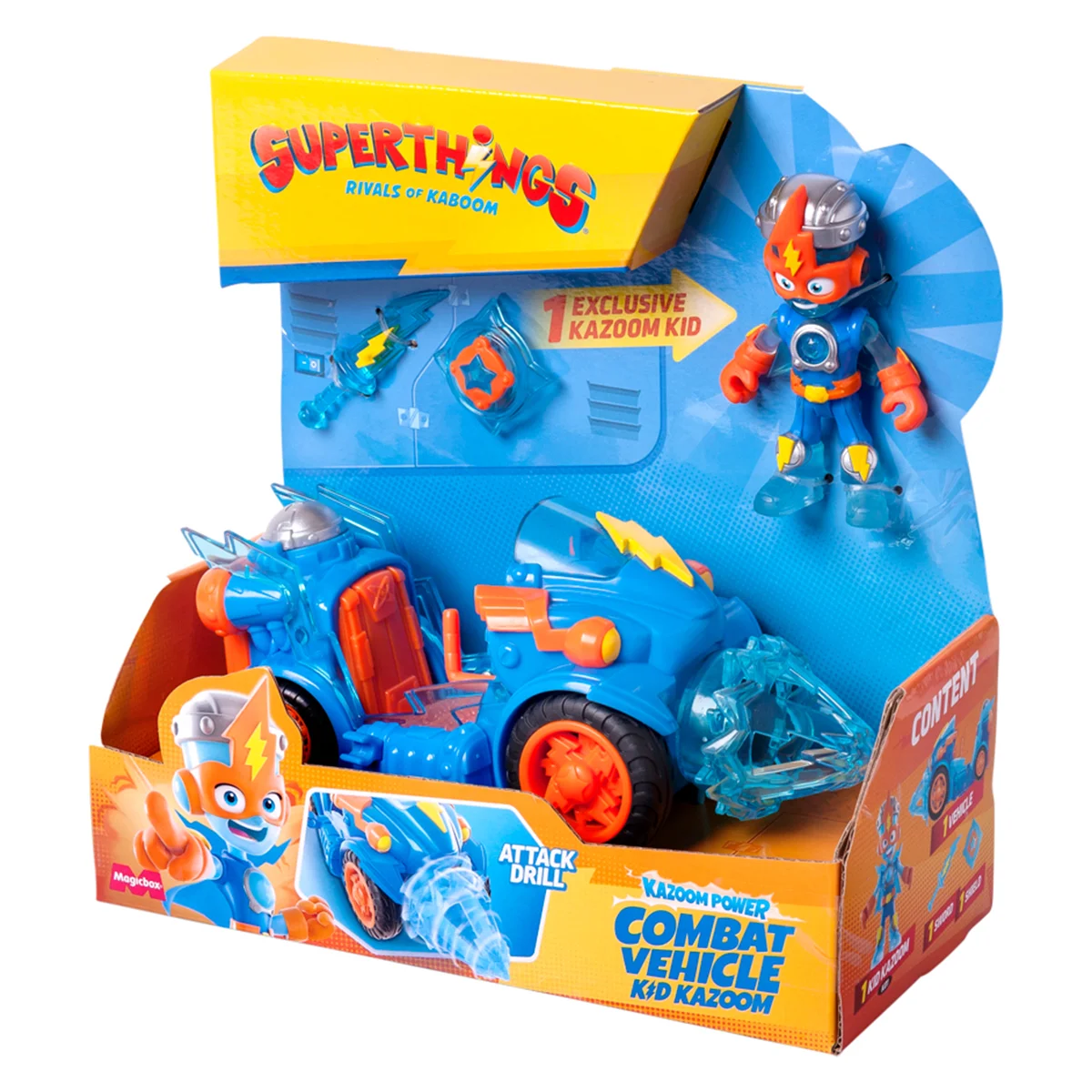Врум-врум! Швидше застрибуйте у суперовий автомобіль з ігровим набором SUPERTHINGS серії «Combat Vehicles» - КІД КАЗУМ і вирушайте назустріч пригодам! Це крутезне авто швидко доставить вас до цілі та ще й розчистить шлях від будь-яких перешкод.