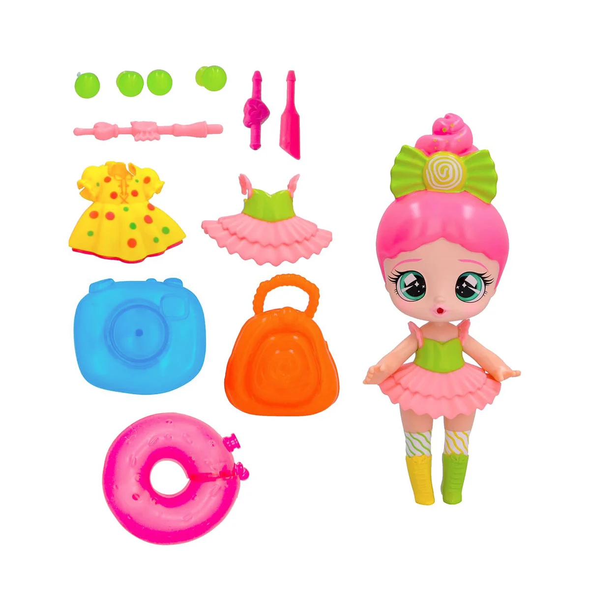 - У наборі з лялькою є аксесуари та кульки, які лялечка може надувати! Необхідно вставити паличку-трубочку однією стороною в рот ляльки, а до іншої сторони прикріпити одну з кульок. Здавлюйте голову лялечки з двох сторін, і дивіться, як надувається кулька! Просто неймовірно!