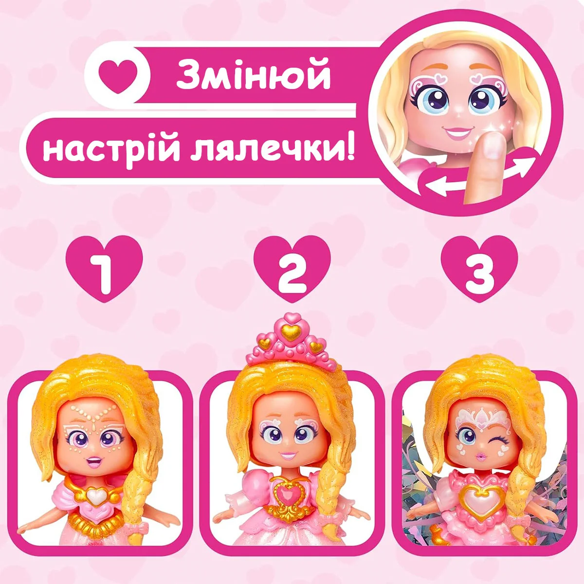 - У героїні 3 різні емоції та 3 різні стилі макіяжу. Просто поверніть її голову й оберіть, який настрій у крихітки сьогодні!
